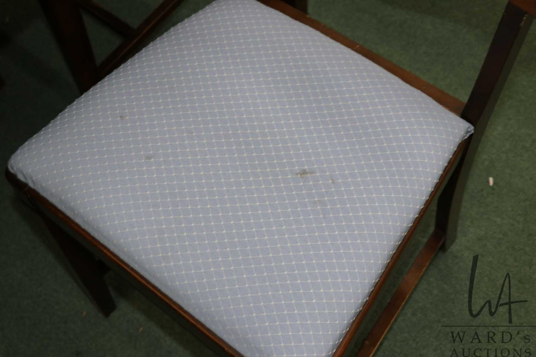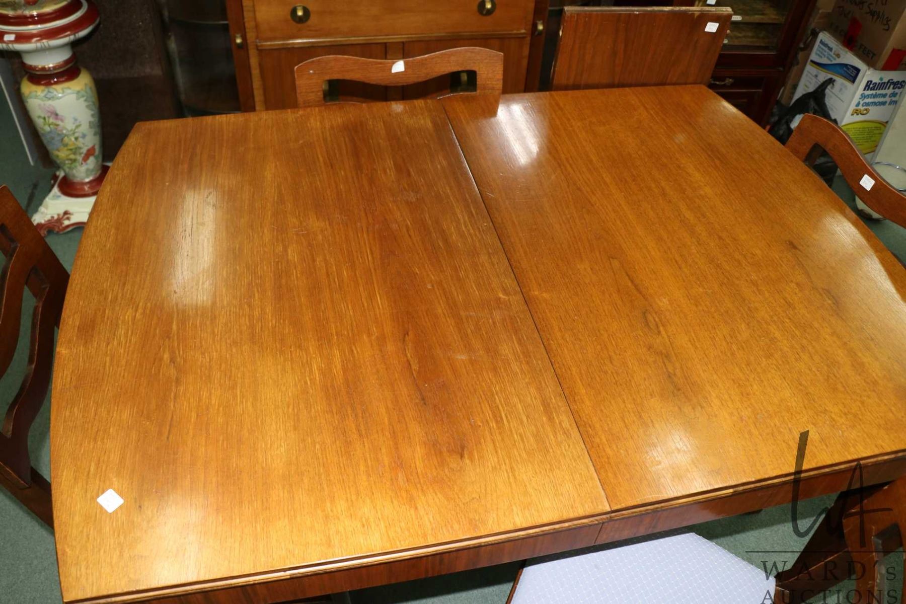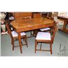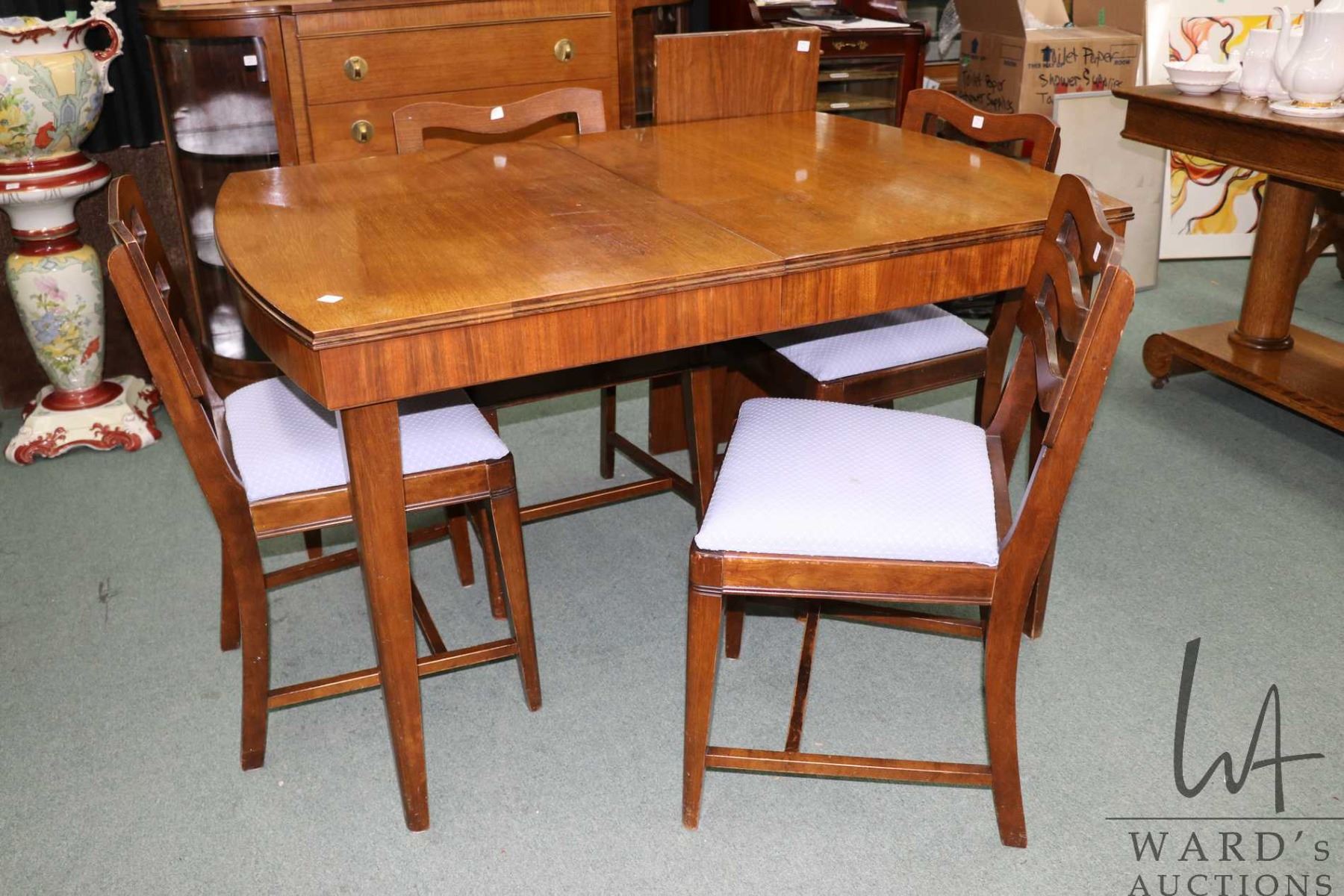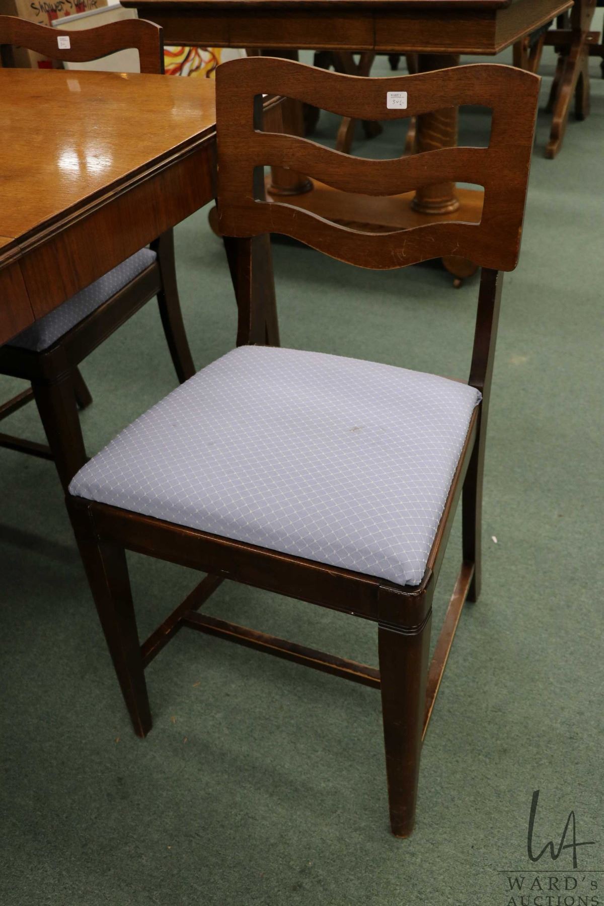 Art Deco dining table 36" X 48" plus one 14" insert leaf and four matching chairs with upholstered seats.