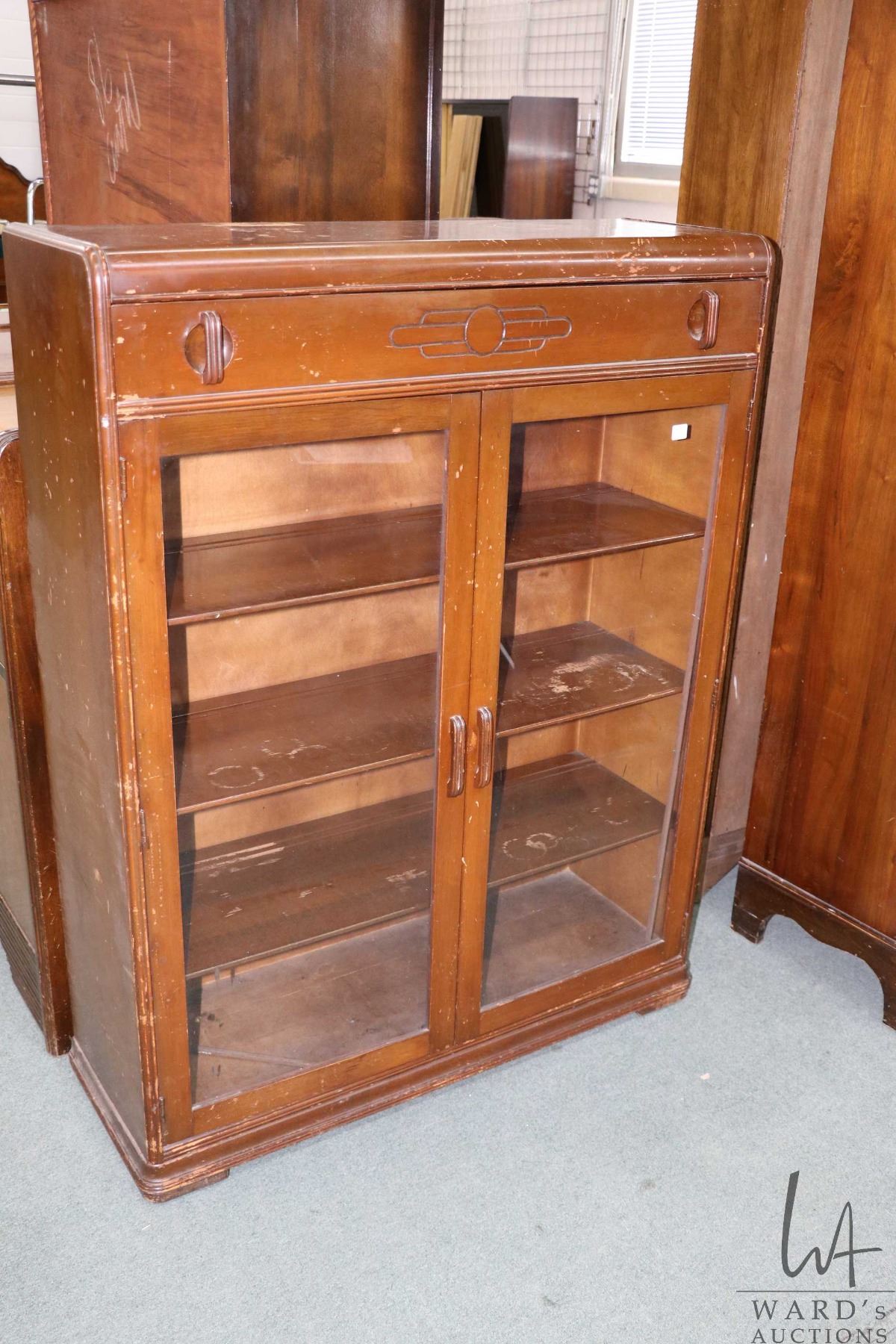 Art Deco two door display cabinet with storage drawer 47" H X 36" W X 13" D