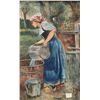 Artist initialled framed original watercolour of a Dutch woman pouring water, marked "Copy V" 17 1/2" X 11"