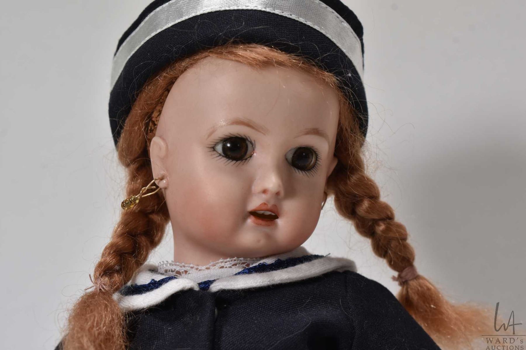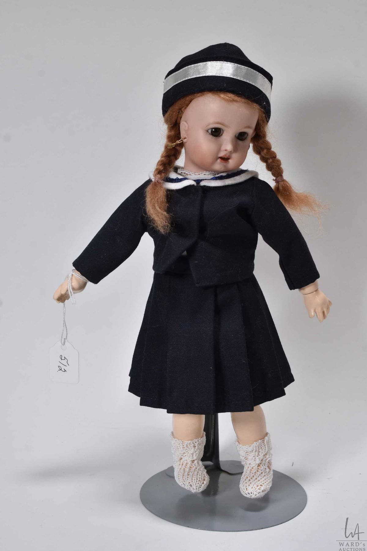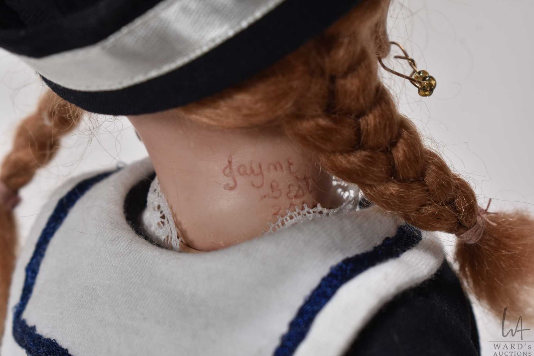 Artist reproduction Bleuette doll made by Jayme Best, porcelain head on wood body, glass eyes and mohair wig 11 1/2" in height
