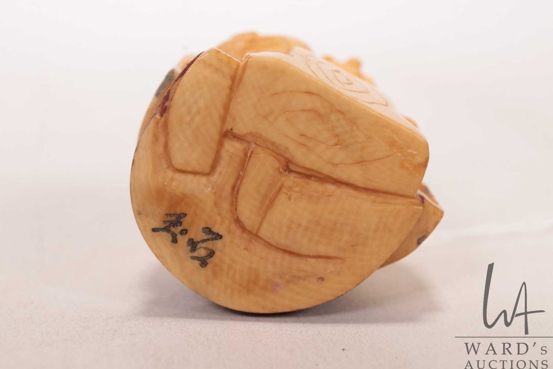 Artist signed, hand carved Japanese ivory netsuke, 1 1/2" in height