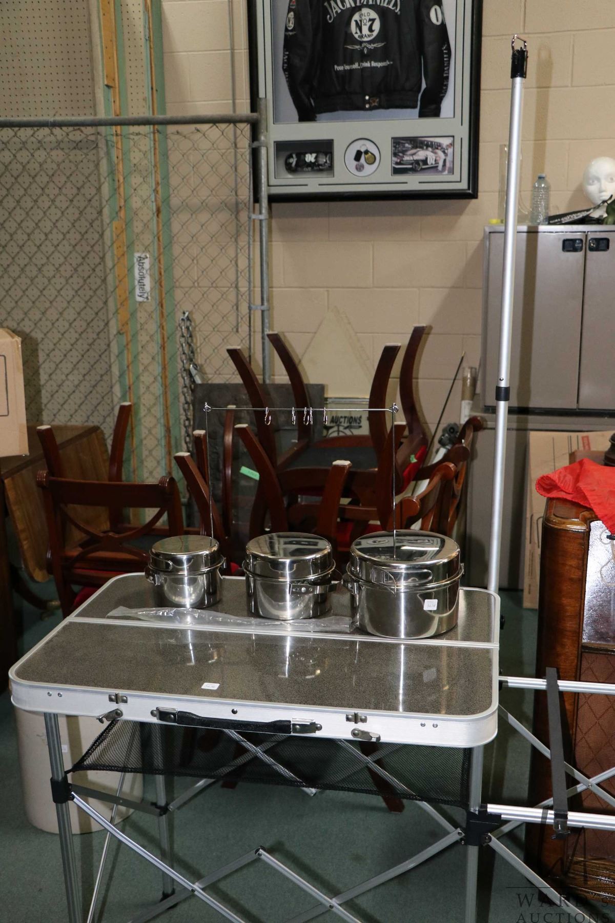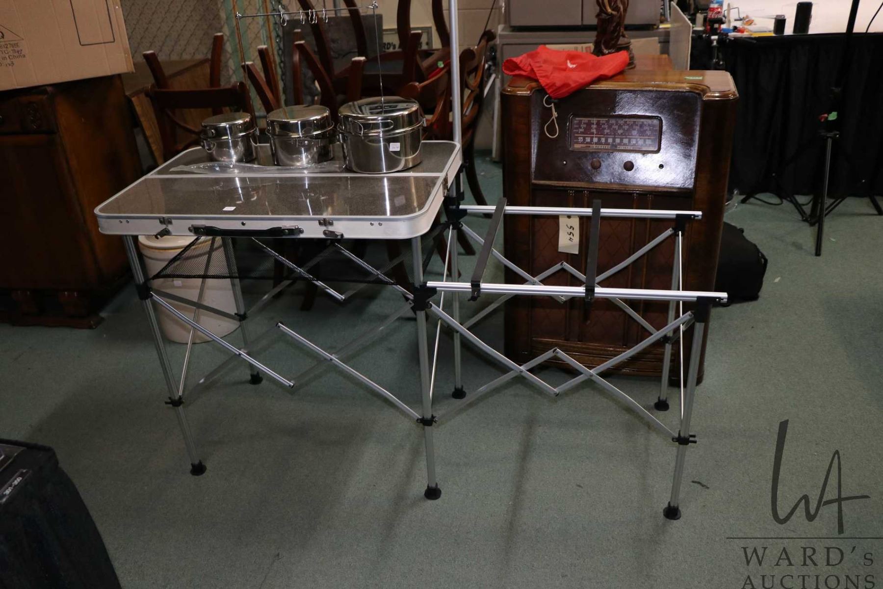 As new Coleman Pack-Away Camp Kitchen and a set of large camping pots