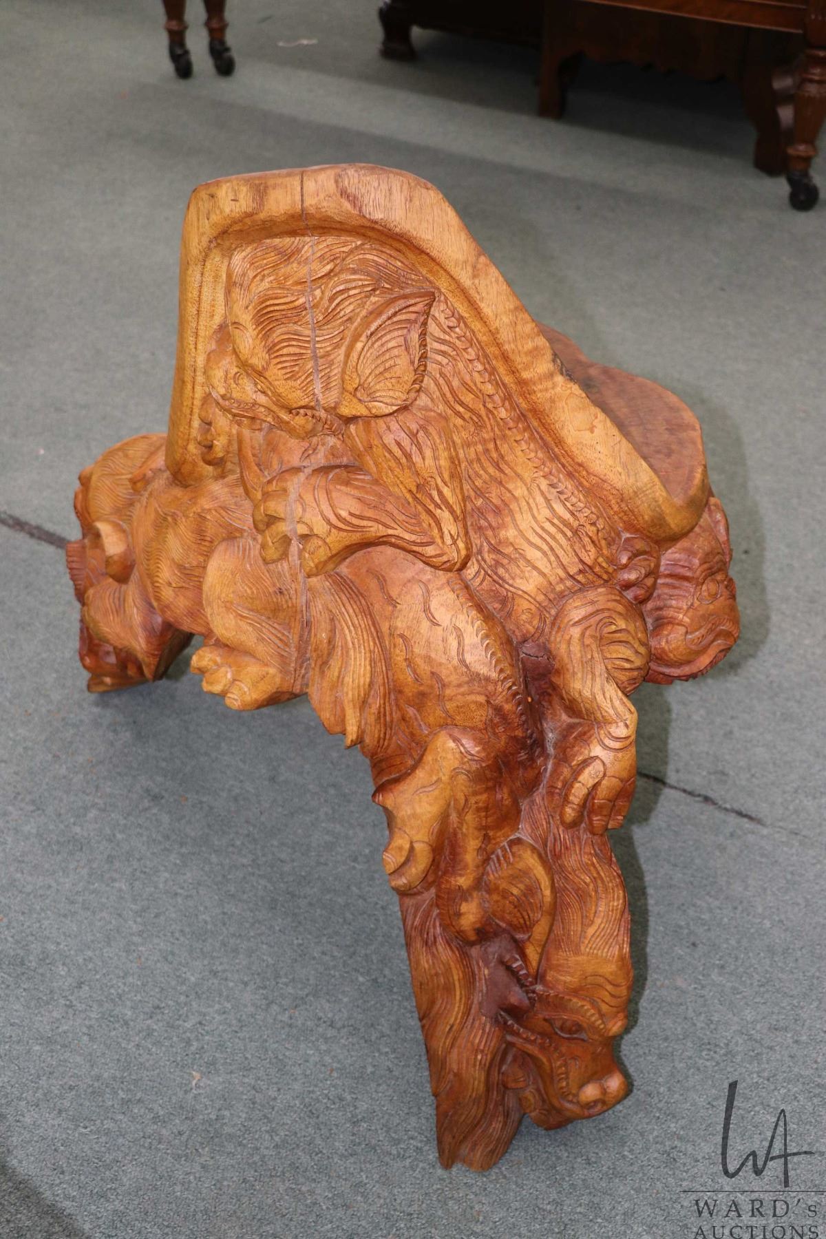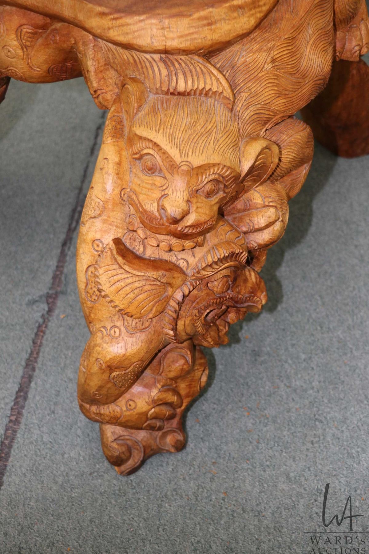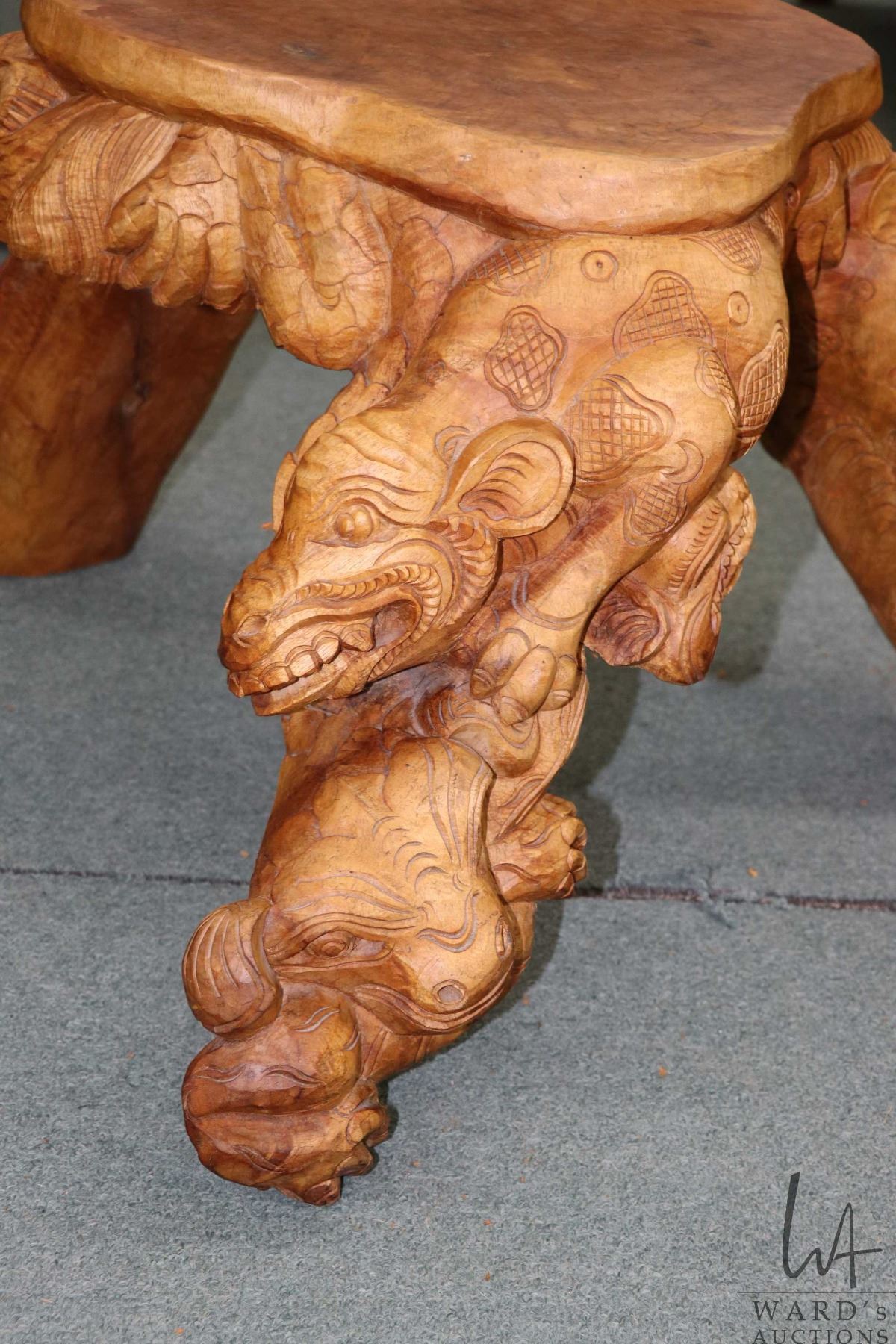 Asian hand carved garden stool with impressively carved tiger and fighting dragons, seat height of 17"