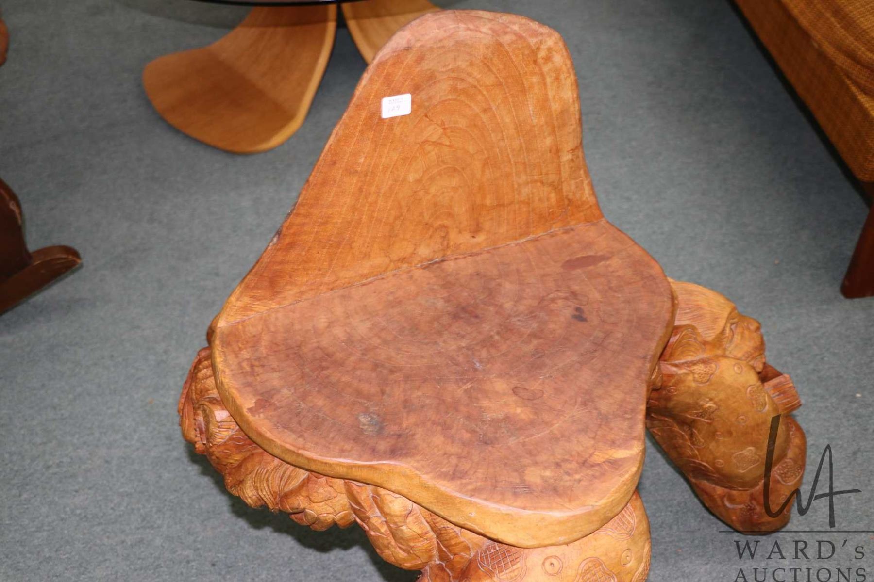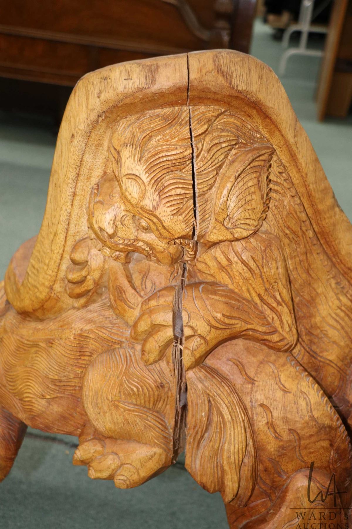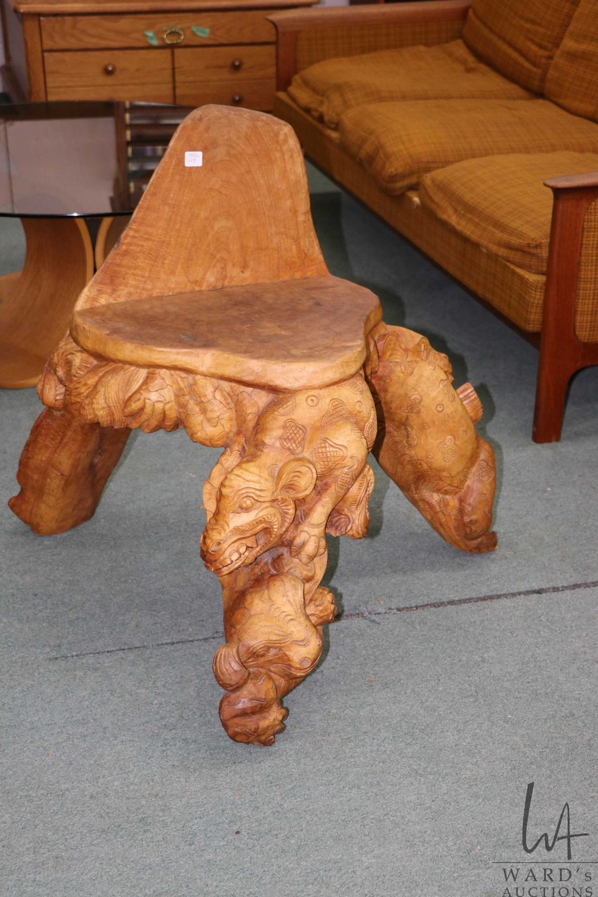 Asian hand carved garden stool with impressively carved tiger and fighting dragons, seat height of 17"