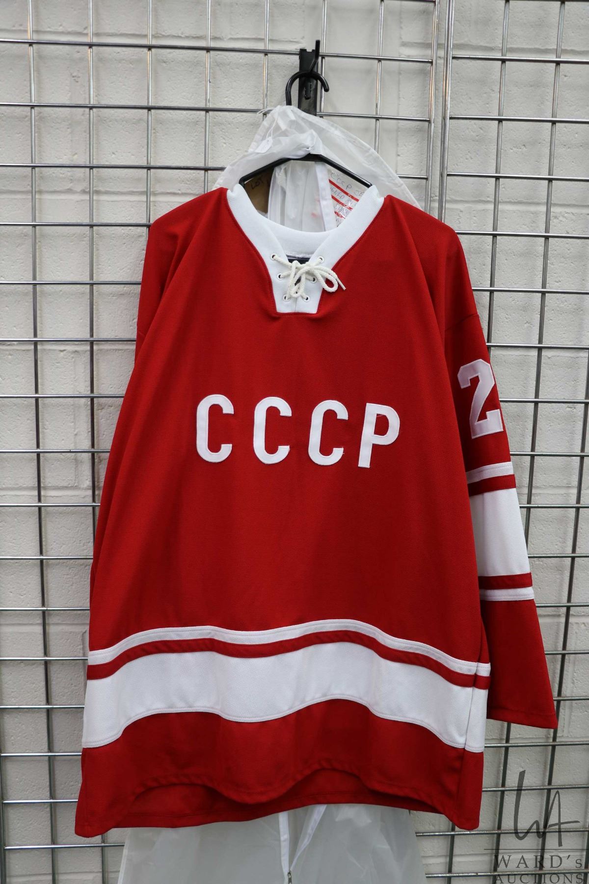 Athletic Knit Russian CCCP Russian Summit series hand signed Vladislav Tretiak No. 70 hockey jersey. Adult size XL. Includes AJ Sports World certification sticker