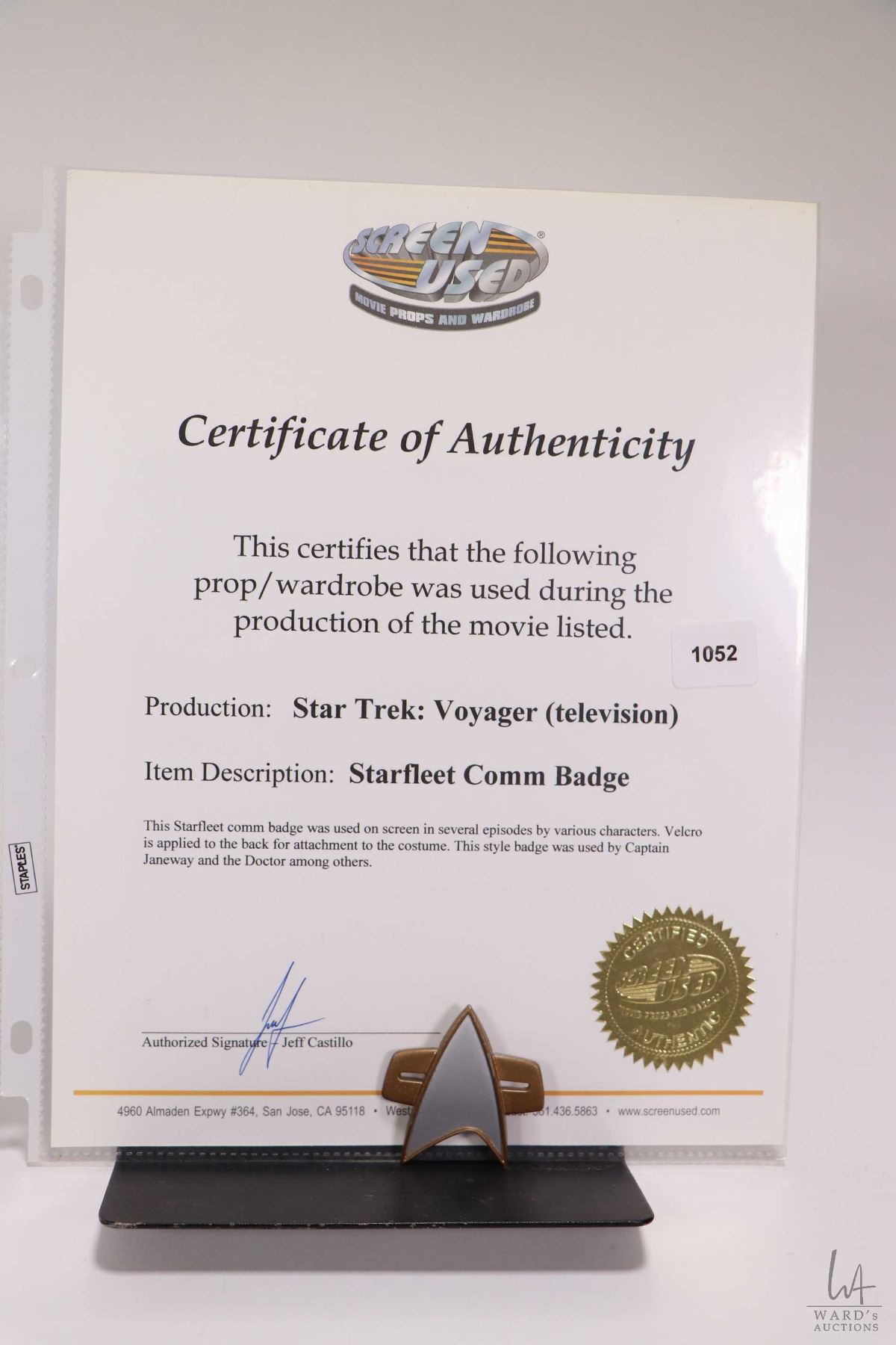 Authentic Star Trek Voyageur ( television series) Starfleet Comm badge with Screen Used Props certificate of authenticity