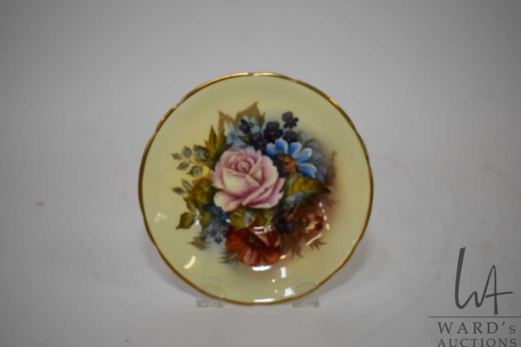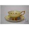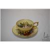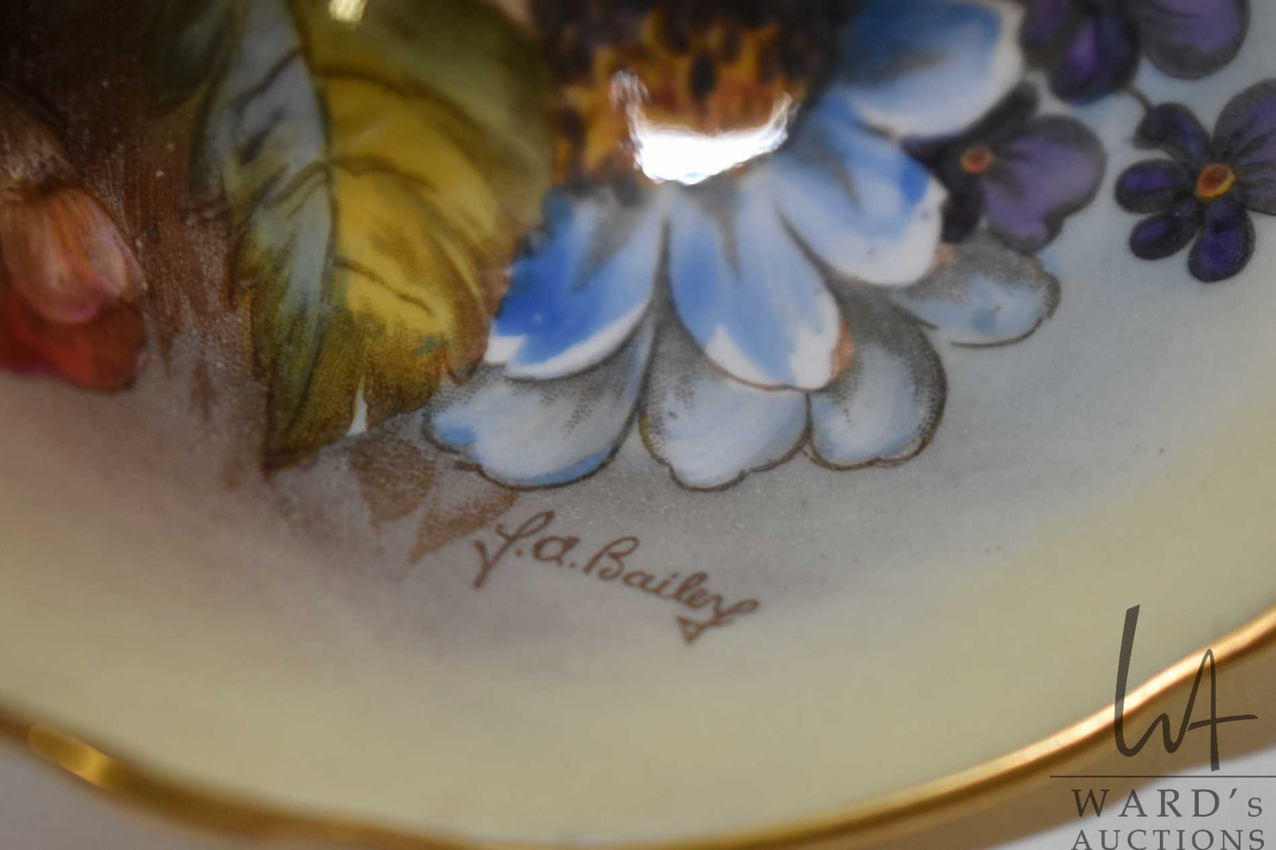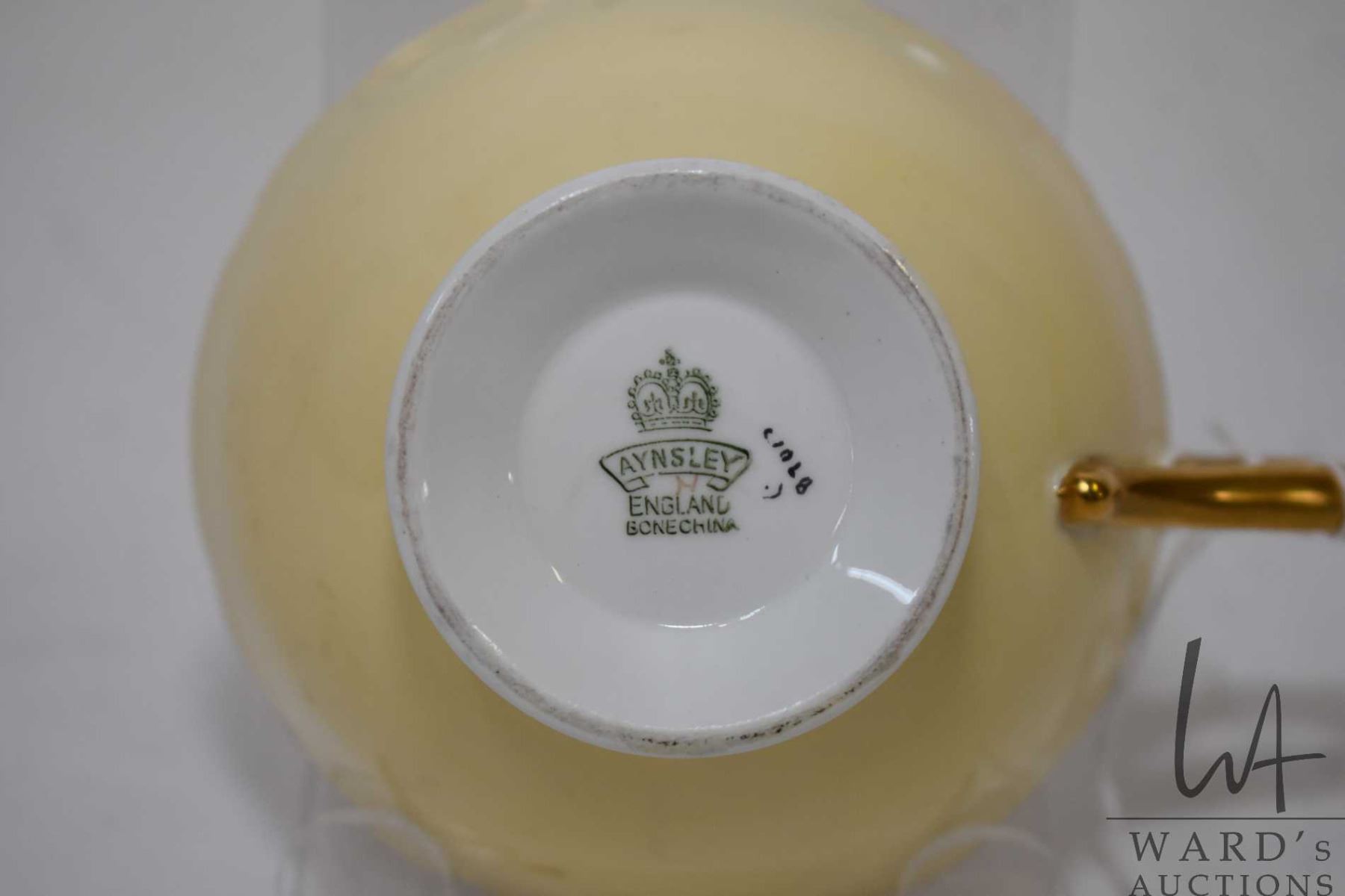 Aynsley bone china teacup and saucer with hand painted detailing and by artist J.A. Bailey. Note: This item cannot be shipped. Local Pickup Only