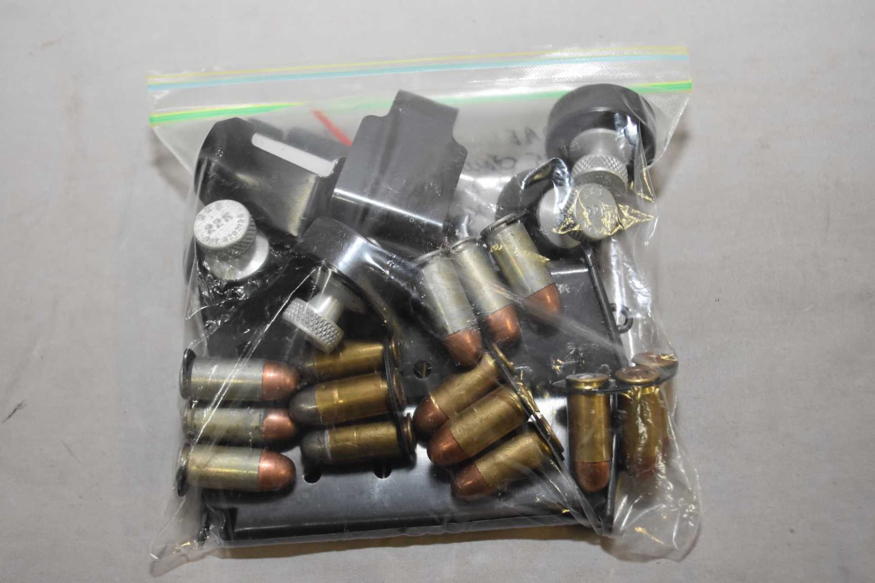 Bag Lot : Speed Loaders, .45 Auto Cal Ammo, Two Mags for ?? , Two Tokarev Mags ?, some ten full moon clips, etc. Note : PAL REQ BECAUSE OF AMMO
