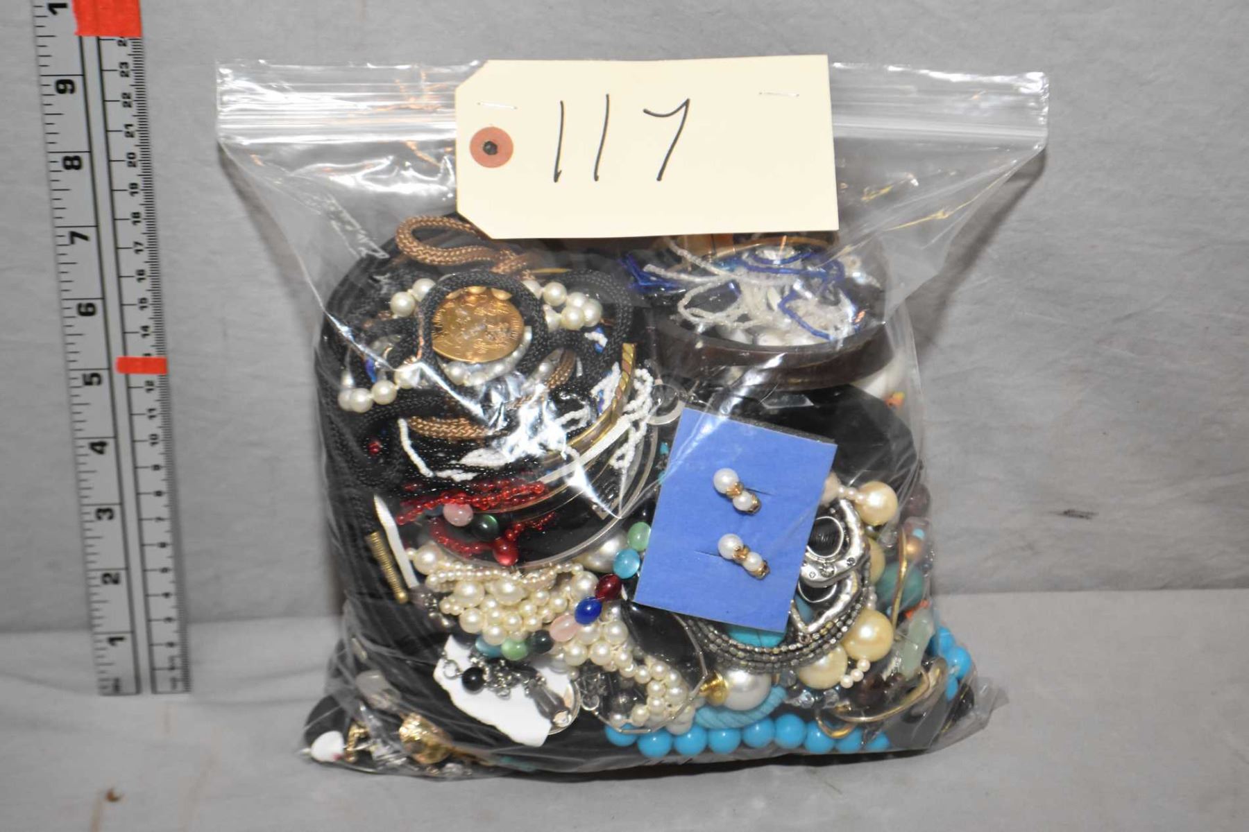 Bag of vintage and collectible costume jewellery including necklaces, earrings, bracelets etc,