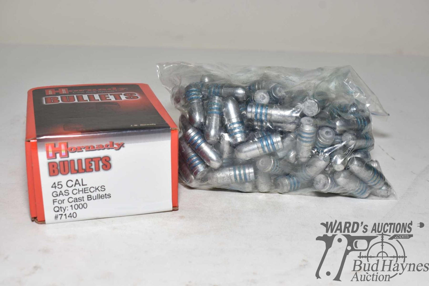 Bag w/ approx. 150 .50 cal 500 gr bullets and a 1000 count box of .45 cal gas checks