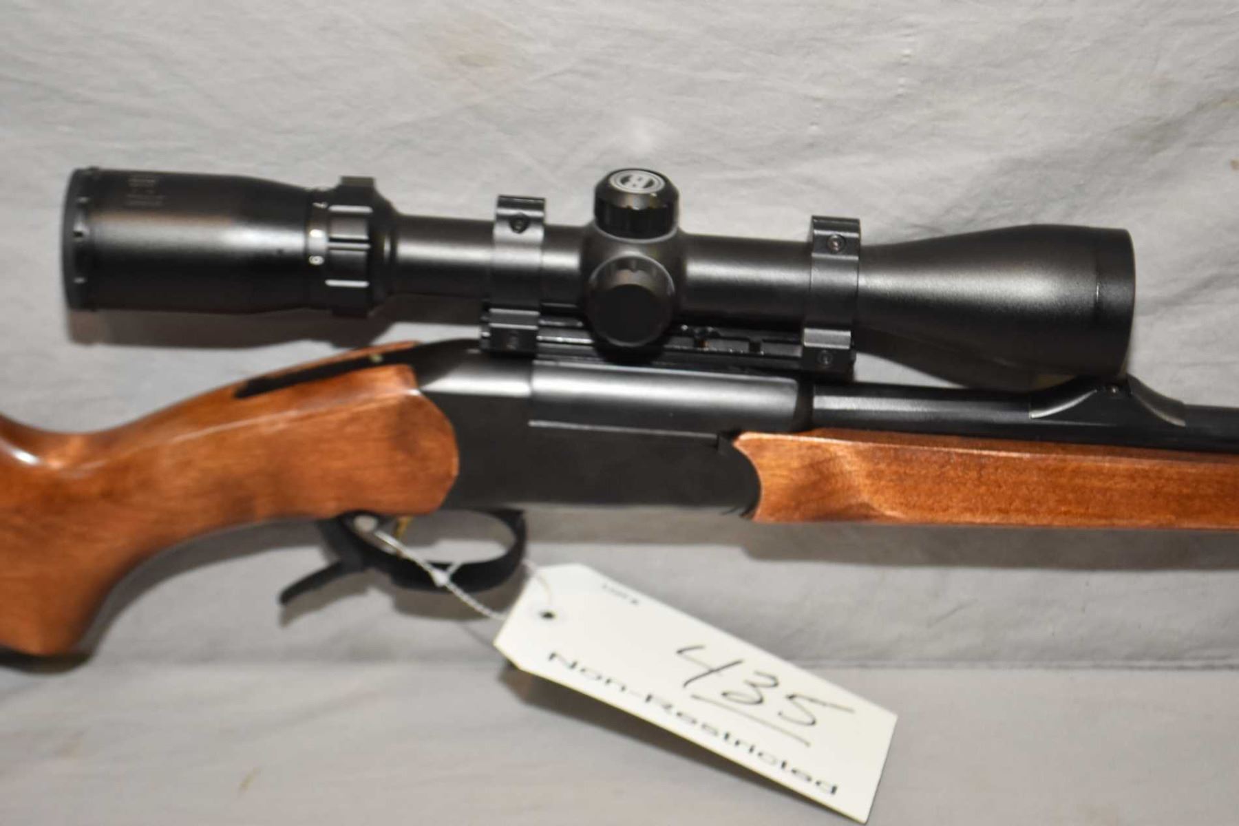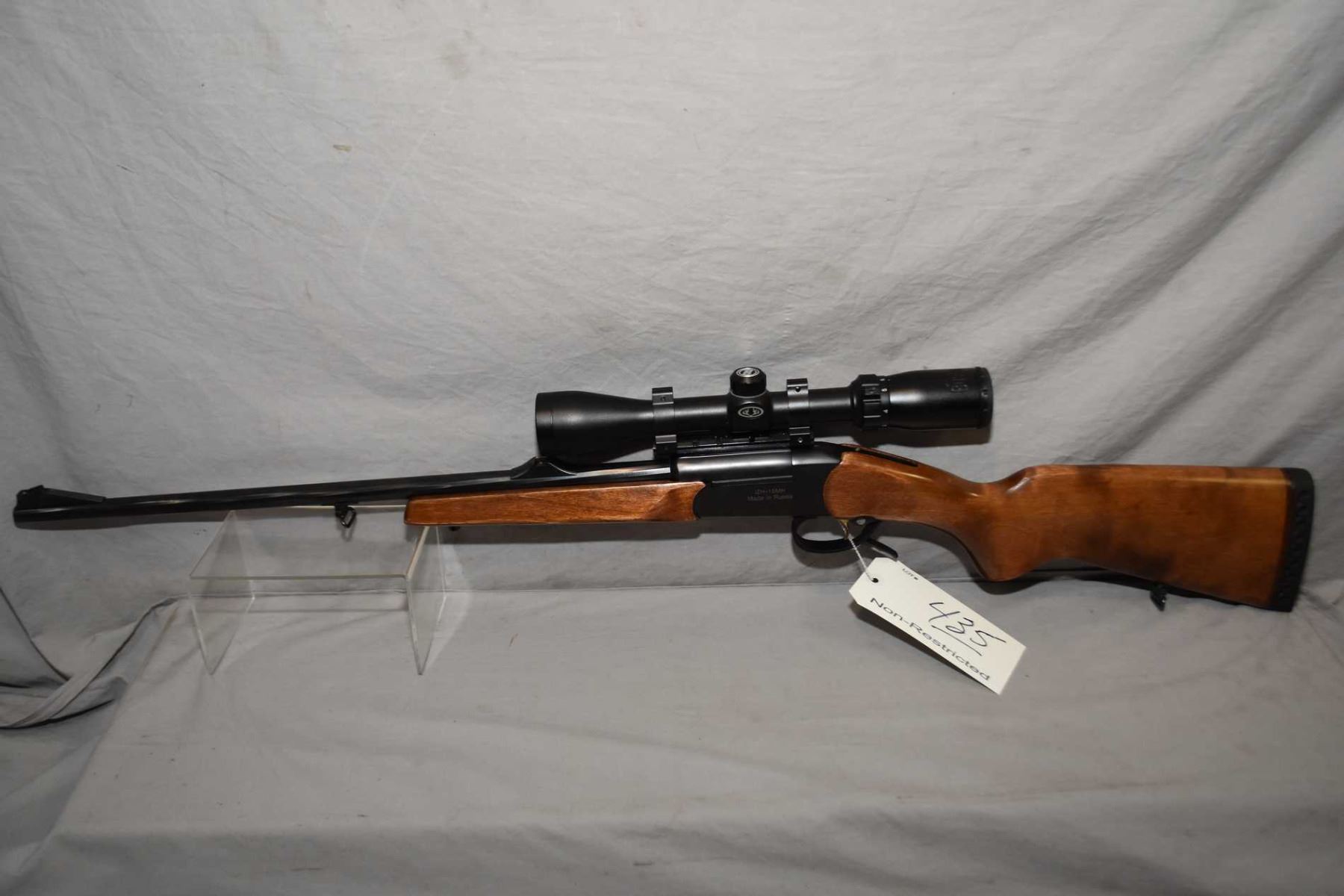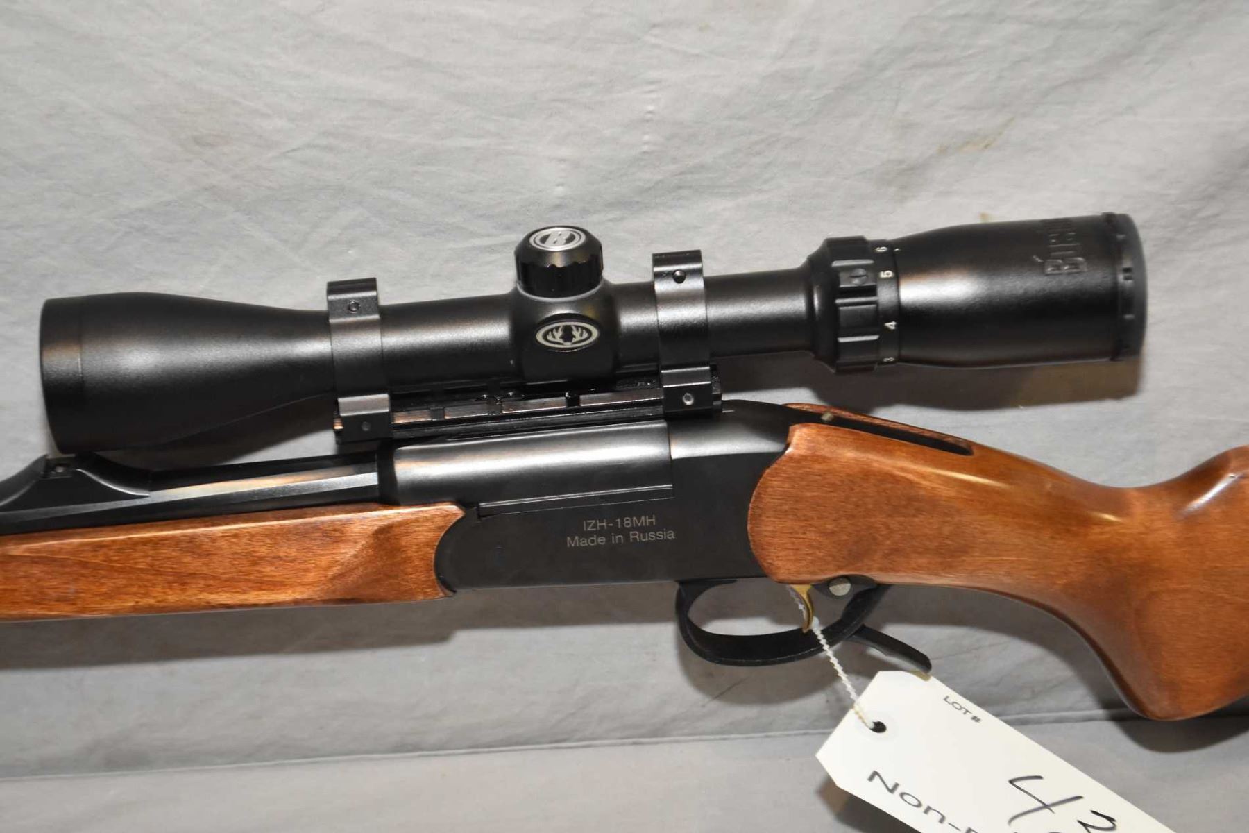 Baikal Model IZH - 18MH .223 Cal Single Shot Break Action Rifle w/ 23 1/2" forge style bbl [ blued finish, part of rear sight removed, also fitted w/ Bushnell 3 x 9 Variable Scope w/ rings and bases, wooden pistol grip stock and forend w/ Baikal recoil pad, sling swivels, few slight marks to wood and metal ] Ser # 051811736R