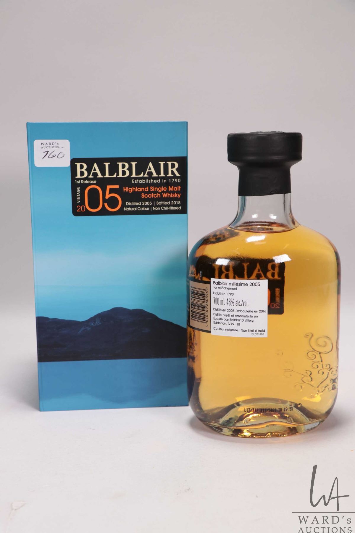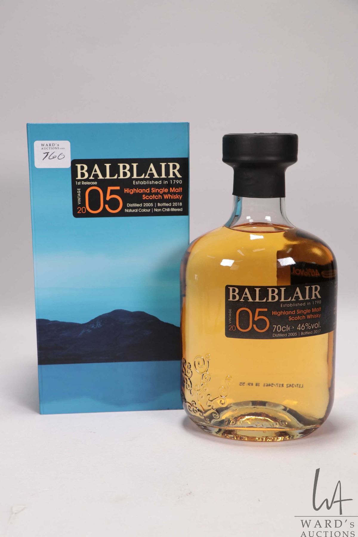 Balblair. 2005/ Highand Single Malt Scotch Whisky/ Bottld 2018/ 700ml/ 46% ABV Note: Alcohol cannot be insured by any courier in Canada. Local pick up recommended. Canadian bidders only.