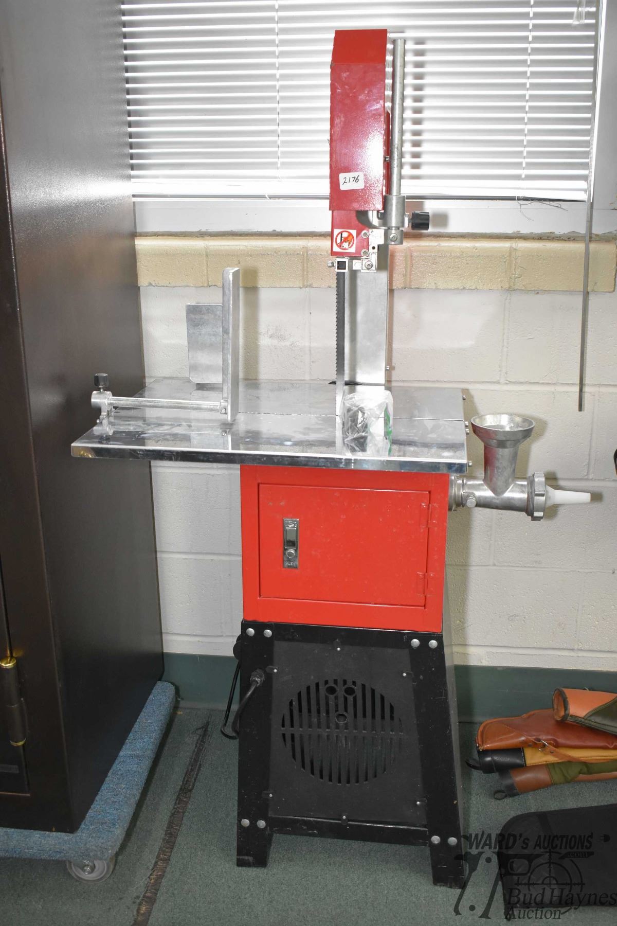 Band saw style meat saw ser no RDQ250 3/4 hp motor cuts up to 240mm in depth and 250mm in width, comes with removable meat grinder