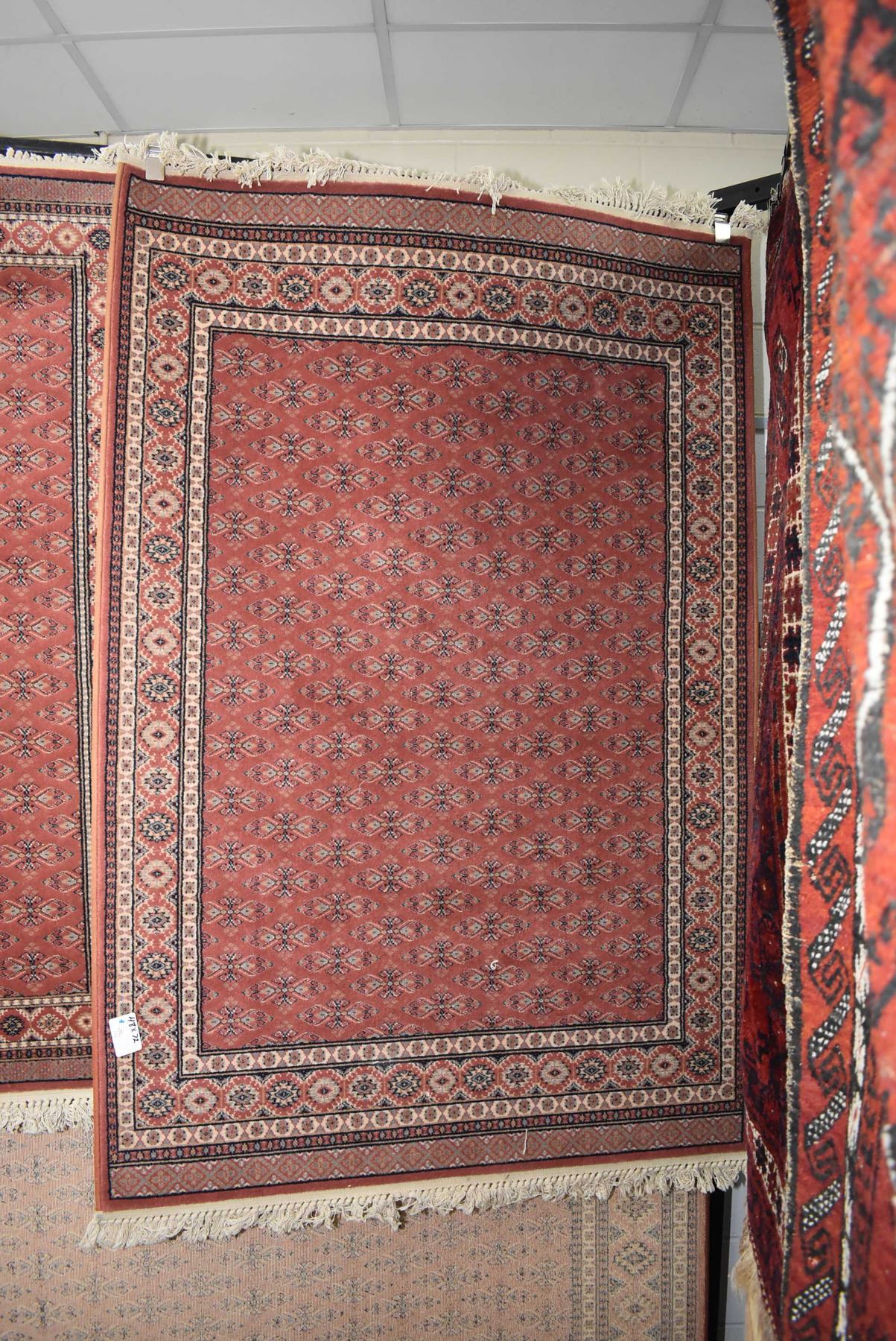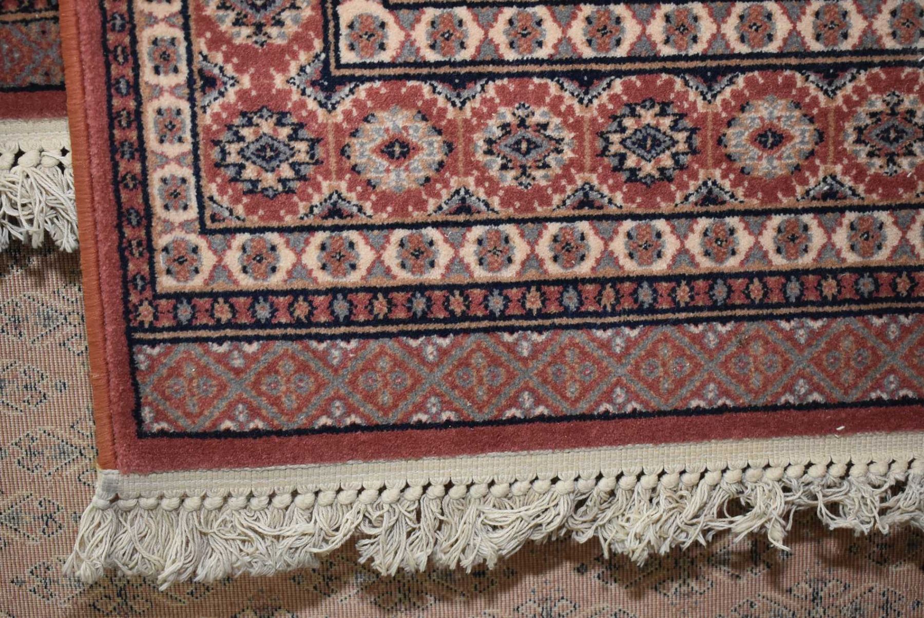Belgium made 100% virgin worsted wool carpet by American Classics with overall geometric pattern in rose colour 48" X 72"