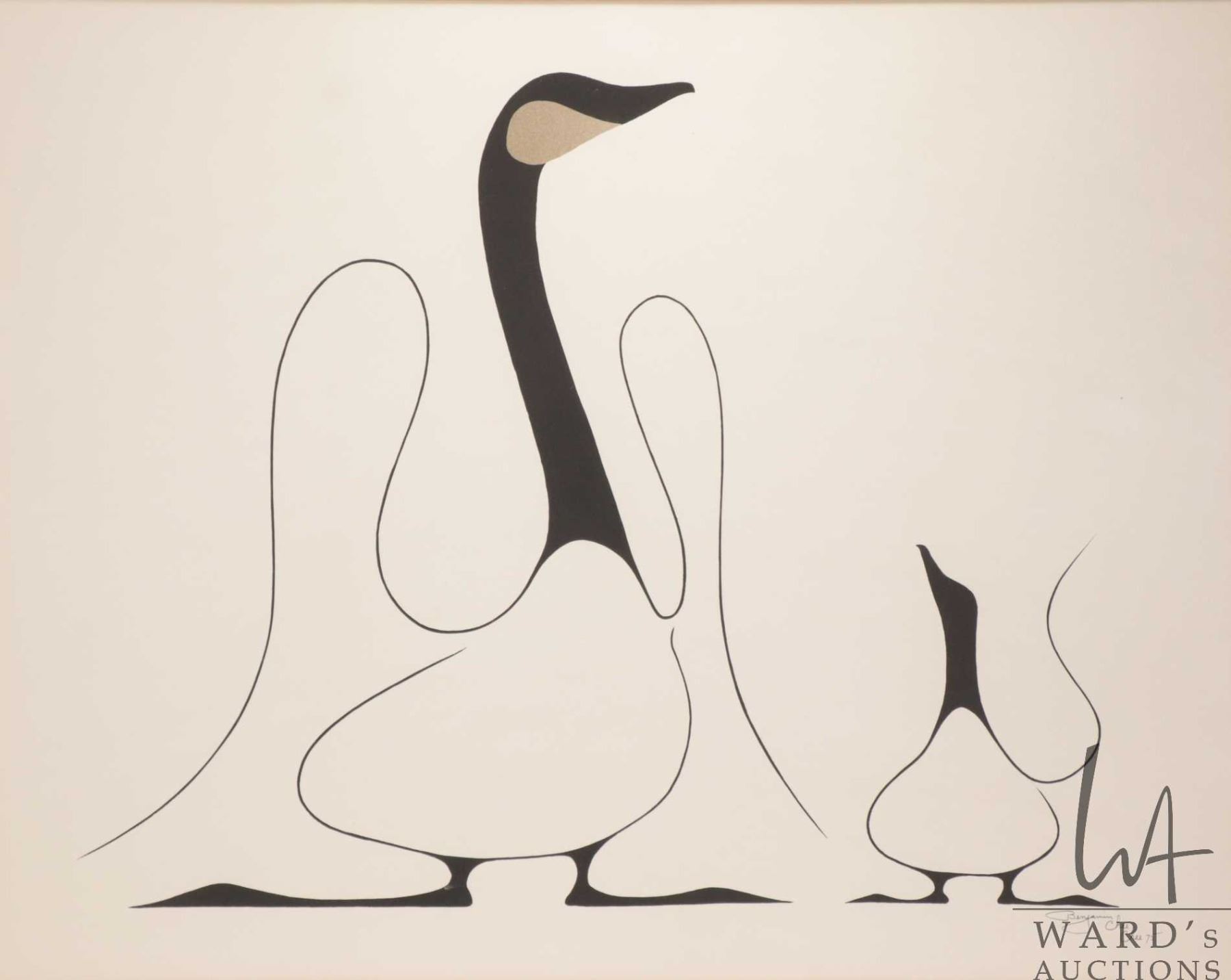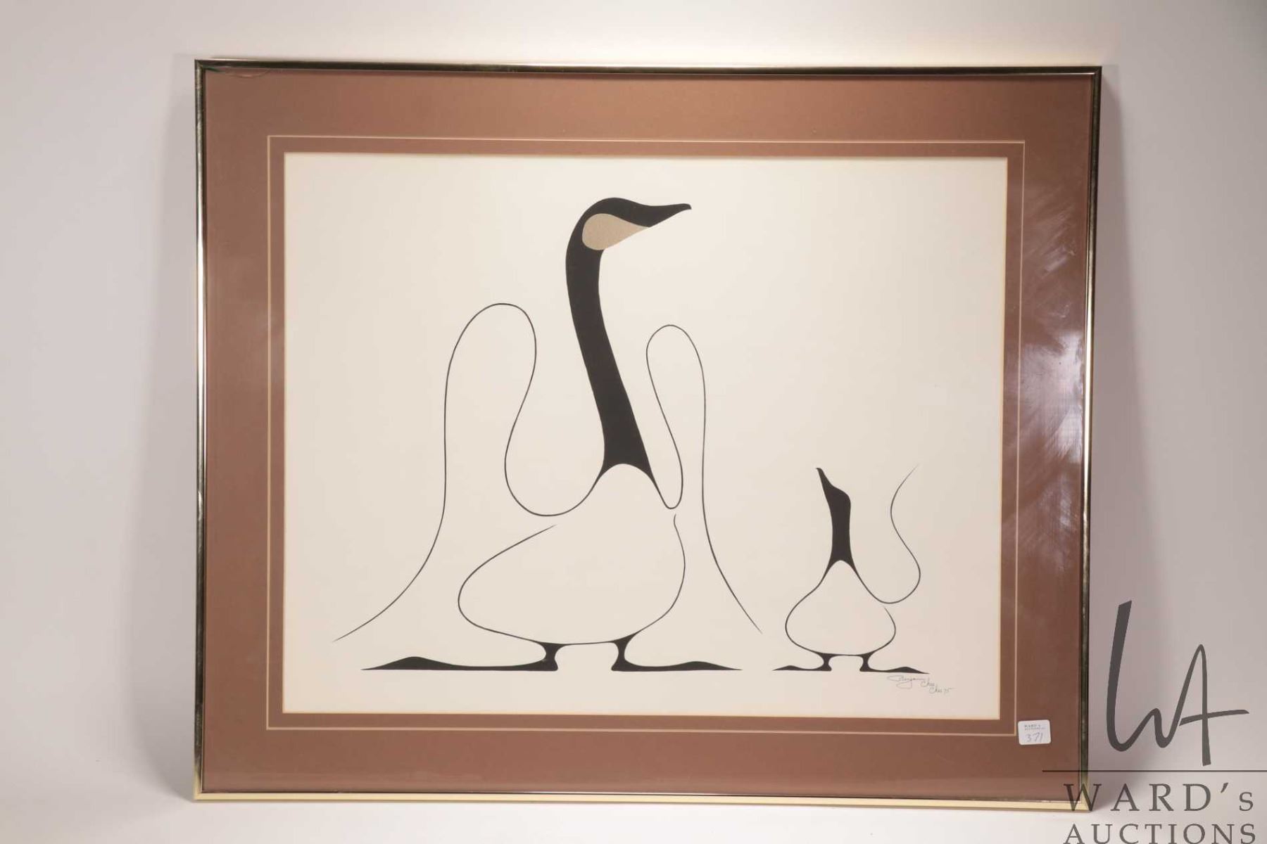 Benjamin Chee Chee framed serigraph "Learning, 18" X 24", note: crack to glass, see photos. Note: Th