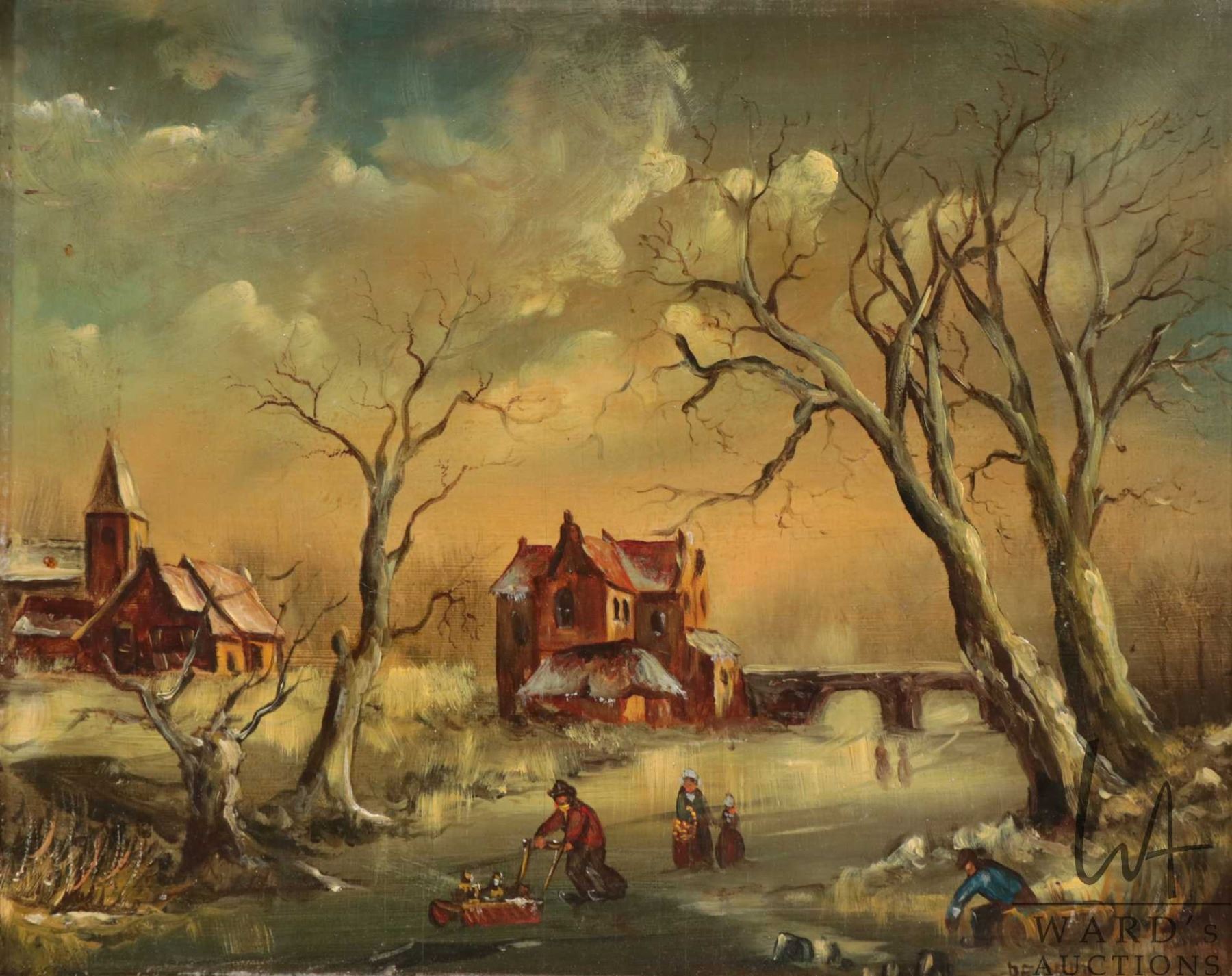 Berger gilt framed oil on board painting of a Dutch skating scene, artist signed, 9" X 11 1/4"