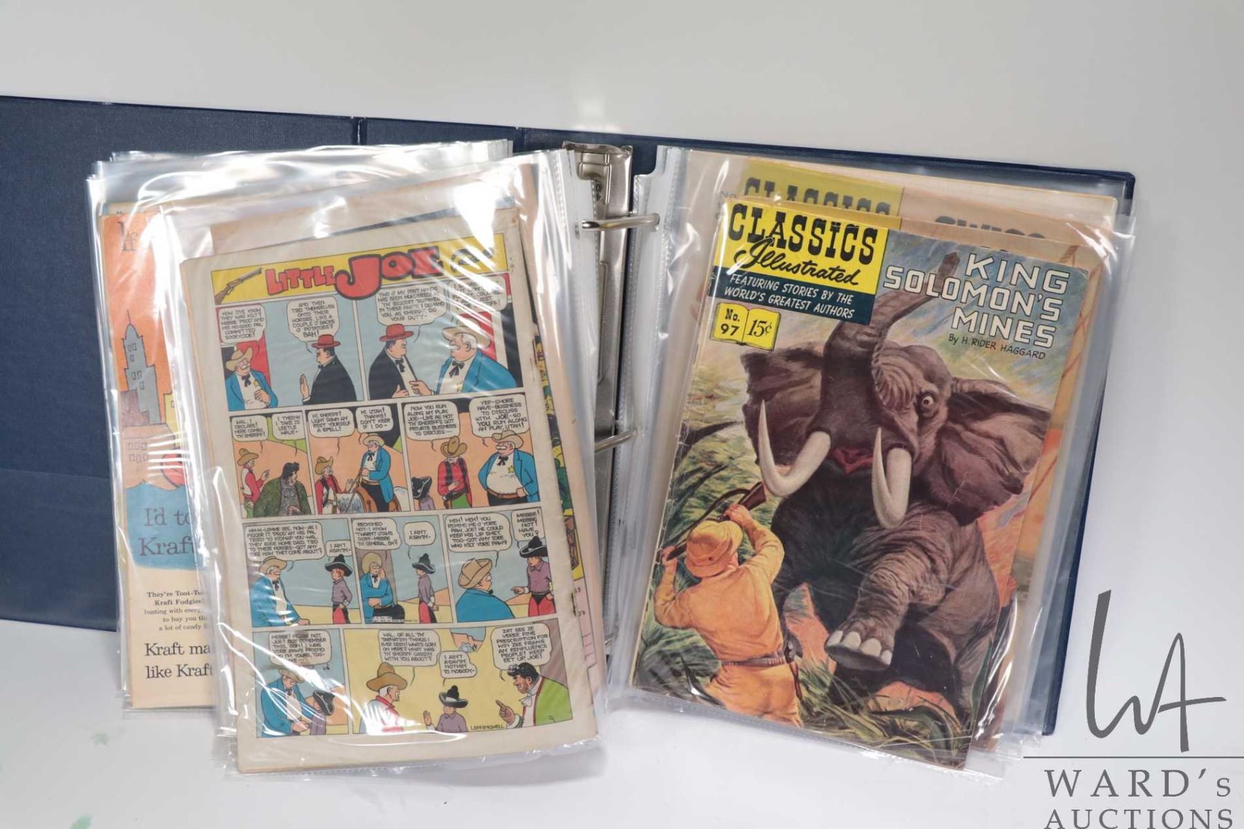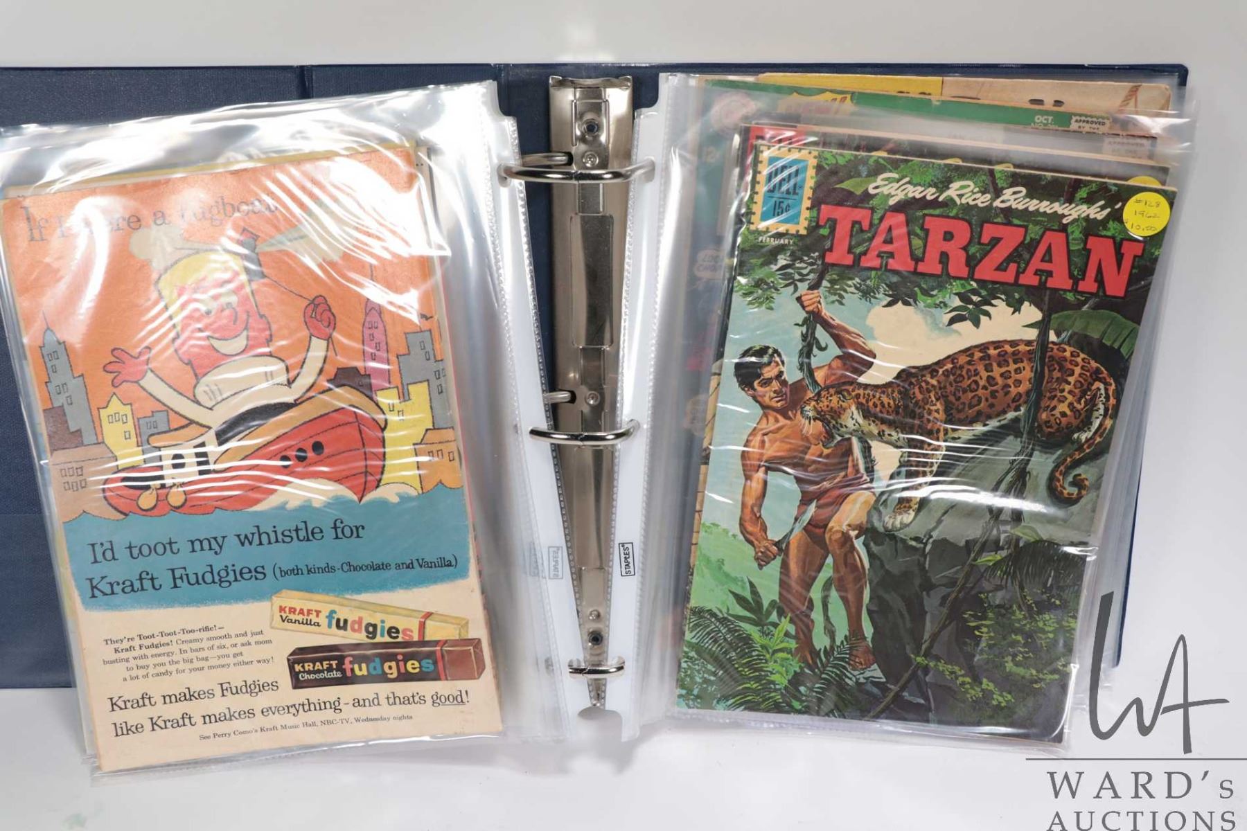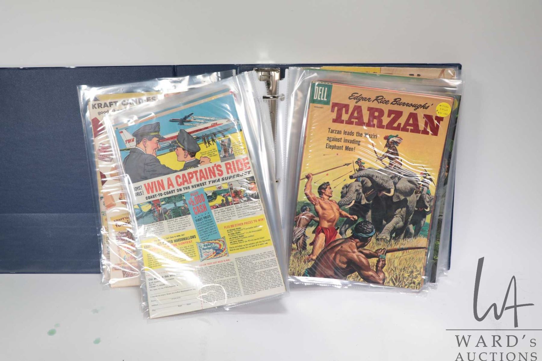 Binder containing fourteen vintage Tarzan comics, two Blackhawke, three Classic comics, one Dick Tracy and one MAD
