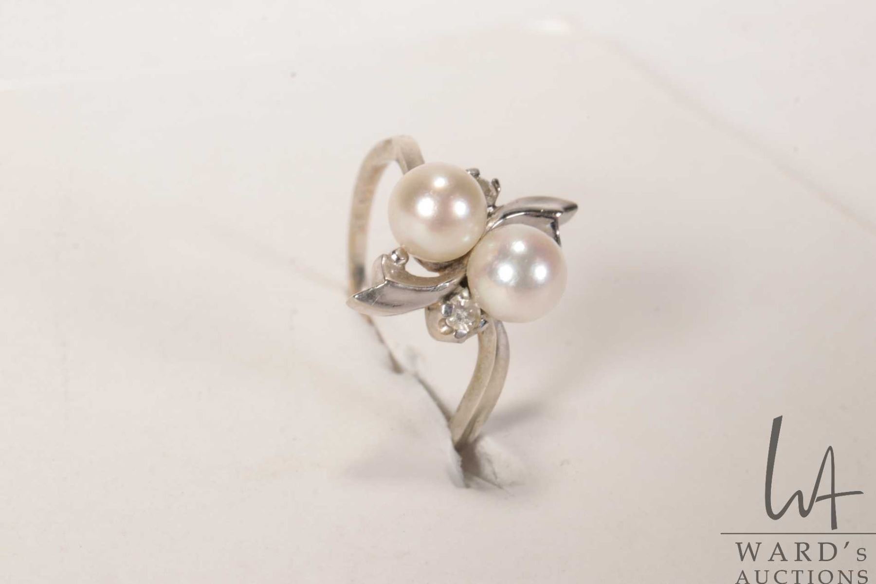 Birks 18kt white gold, double pearl ring with diamond accents, size 6.75