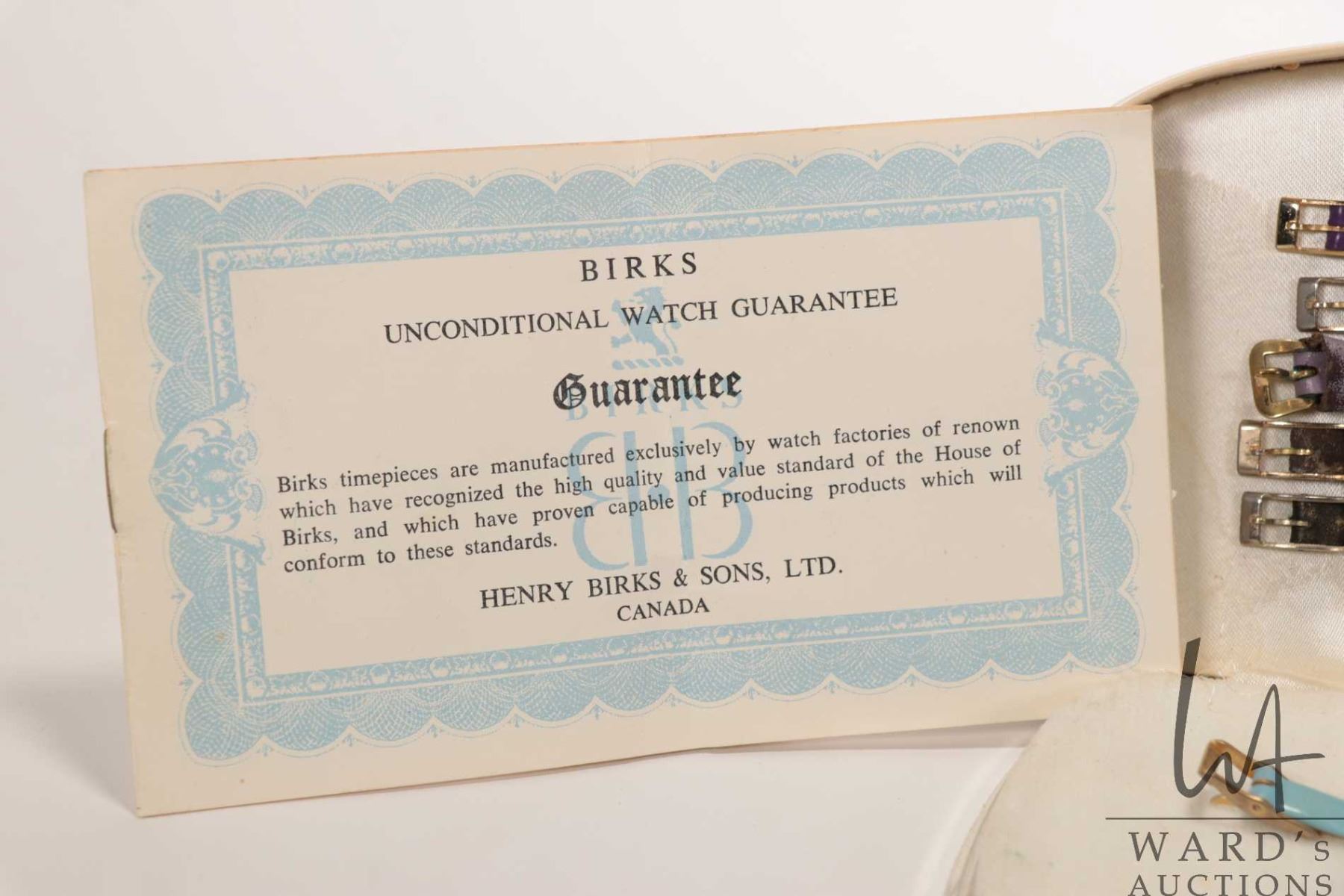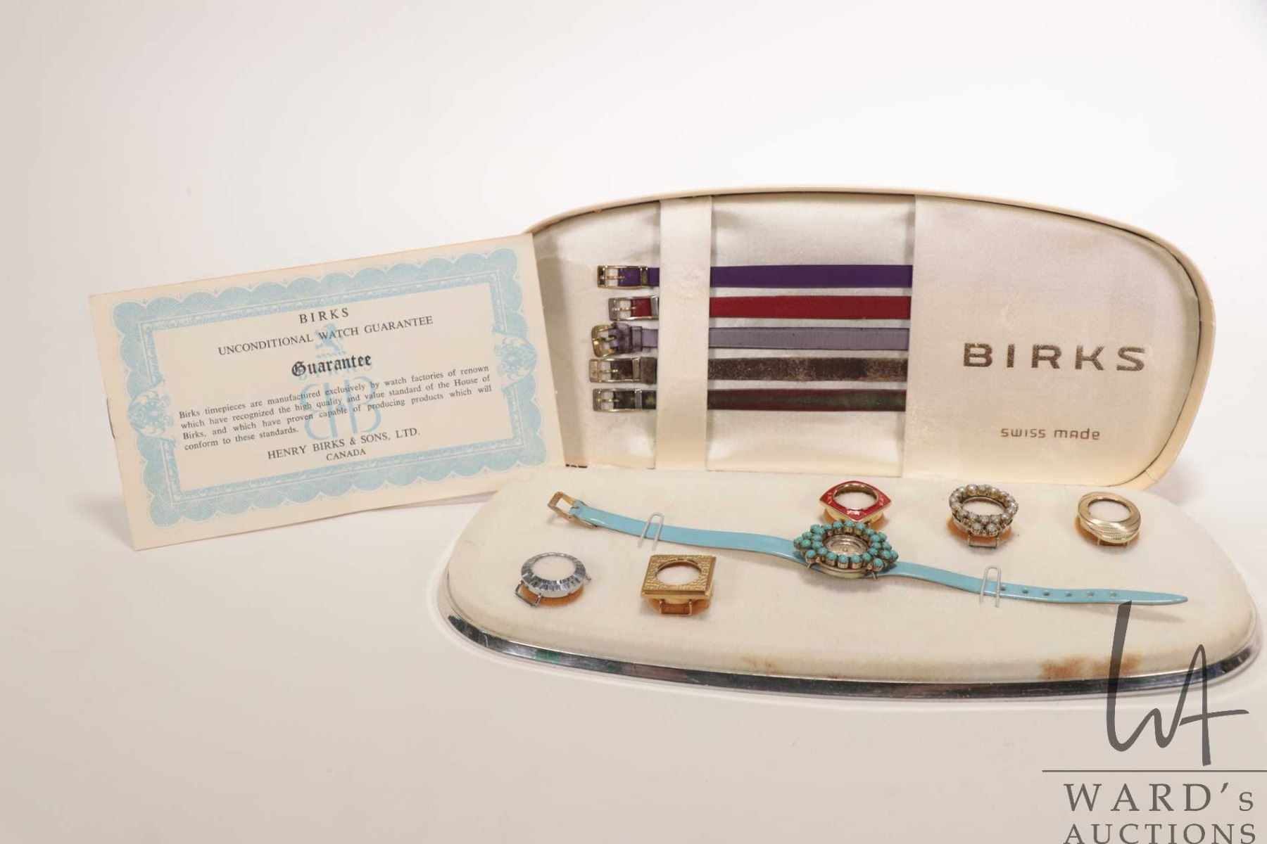 Birks swiss made "Extravaganza Set" wrist watch with 6 interchangeable bezels and straps in fitted case. Includes original watch guarantee, circa 1970. Working at time of cataloguing