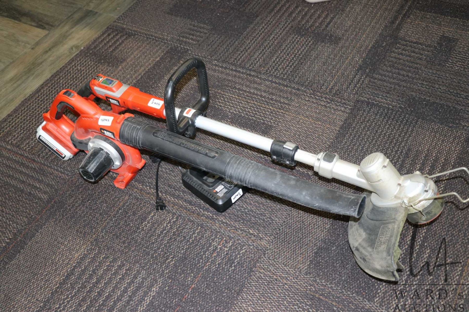Black & Decker battery operated leaf blower and trimmer, comes with one battery and charger, working