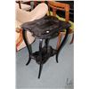 Black finished antique occasional table with carved top and under shelf 28" H X 22" X 16"