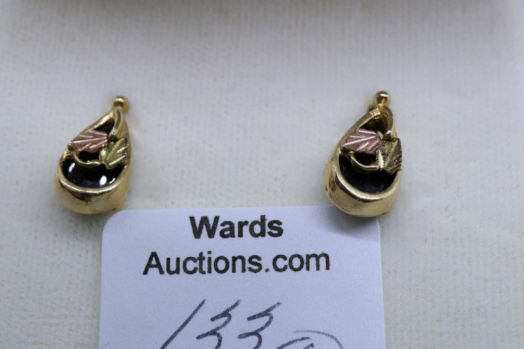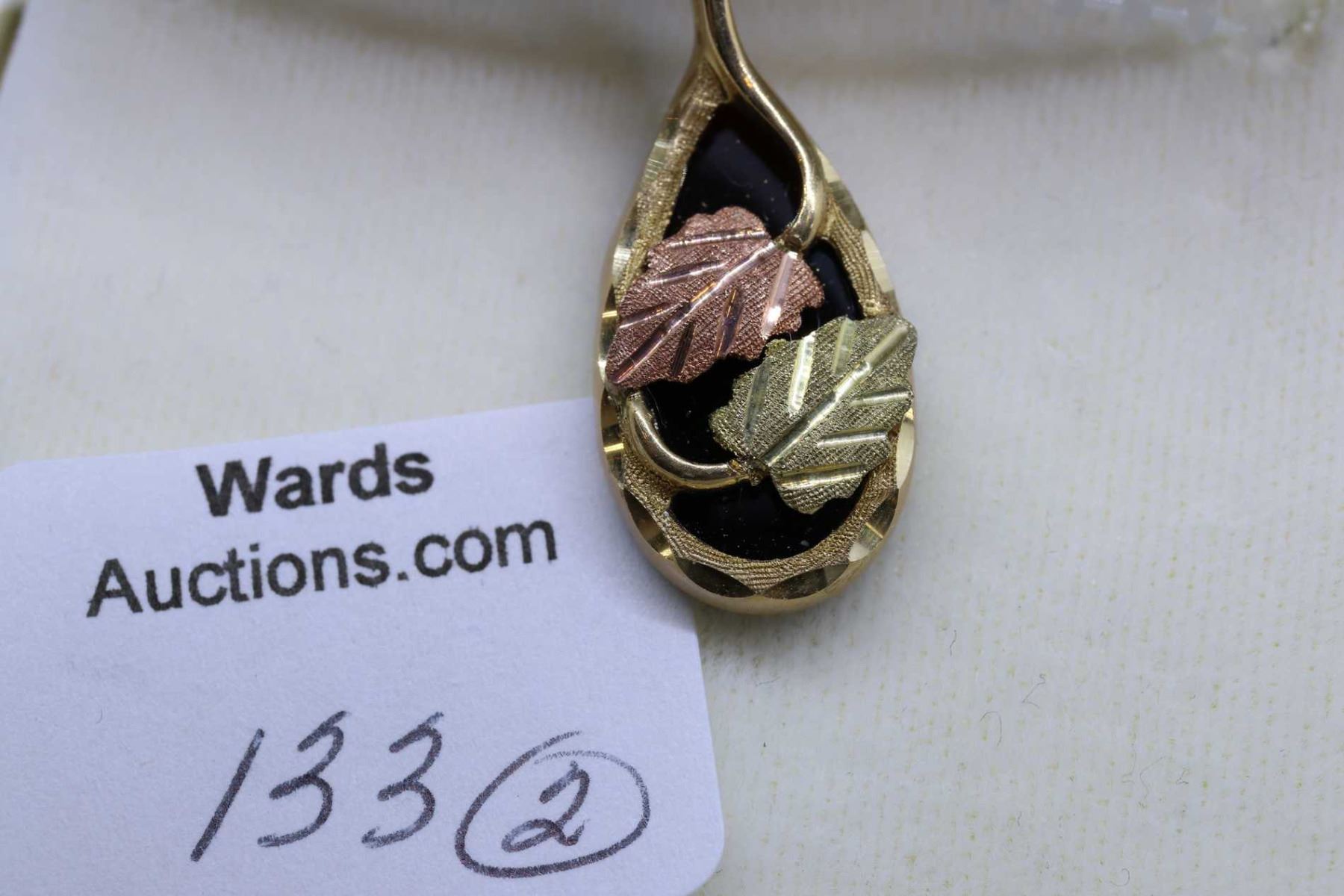 Black hills gold 10kt tri-gold and onyx pendant and co-ordinating earrings with 14kt gold posts