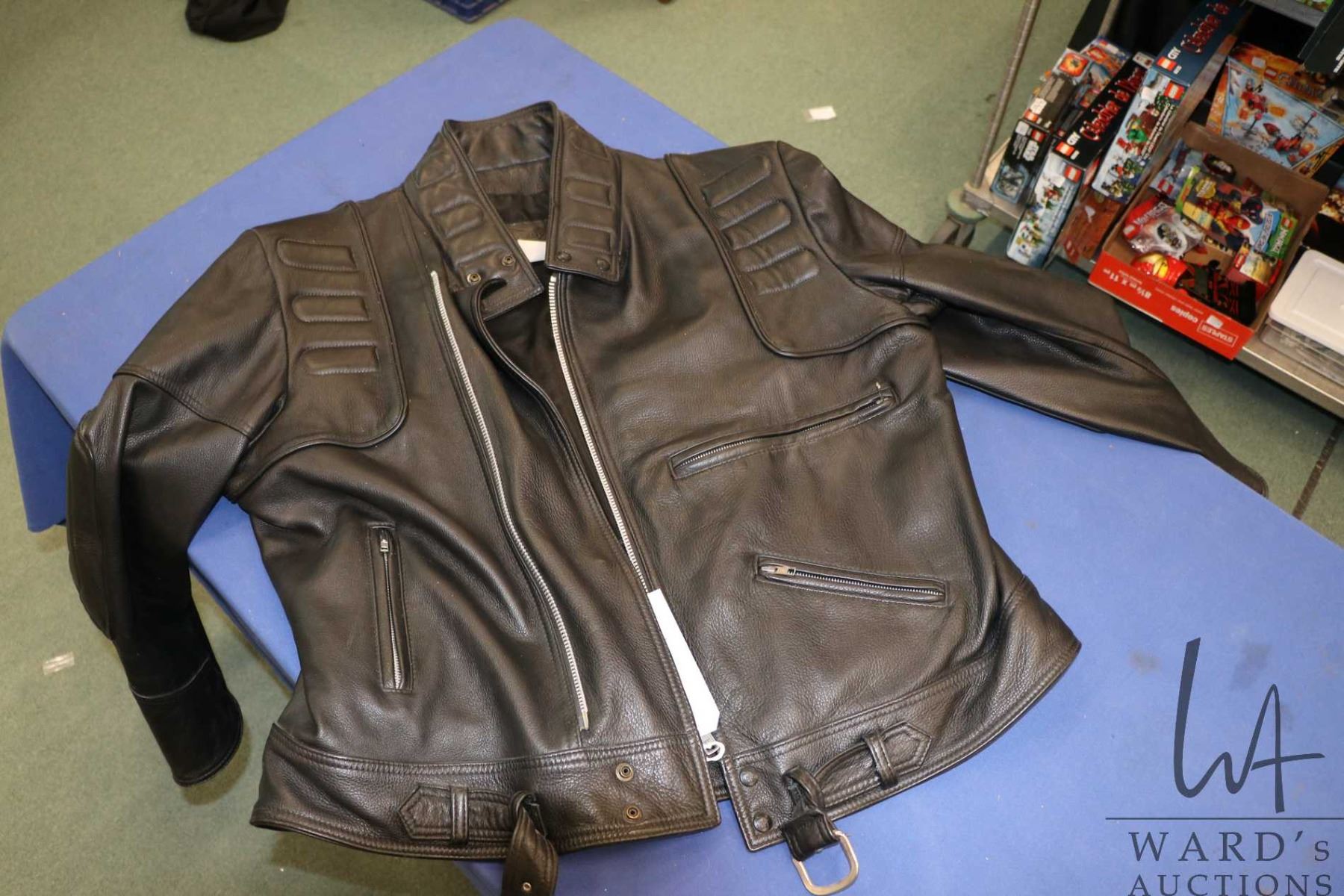 Black leather biker style jacket from The Leather Range, size 2XL ( Full Size)