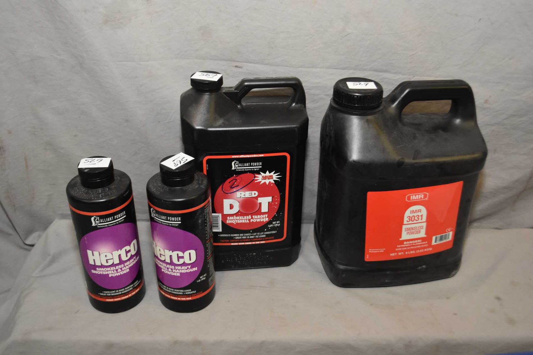 Blue Crate : 8 Lb Bottle IMR 3031 Powder - 4 Lb Bottle Red Dot Shot Shell Powder - 2 One Lb Bottles Herco Shot Shell / Hand Gun Powder -