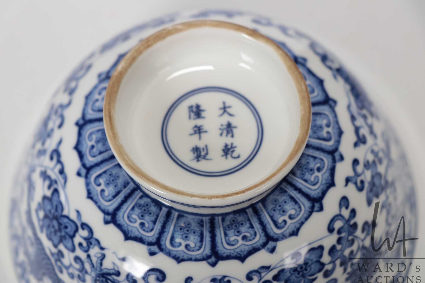 Blue and white dragon branch bowl with Ch'eng-lung reign mark, 3" in height