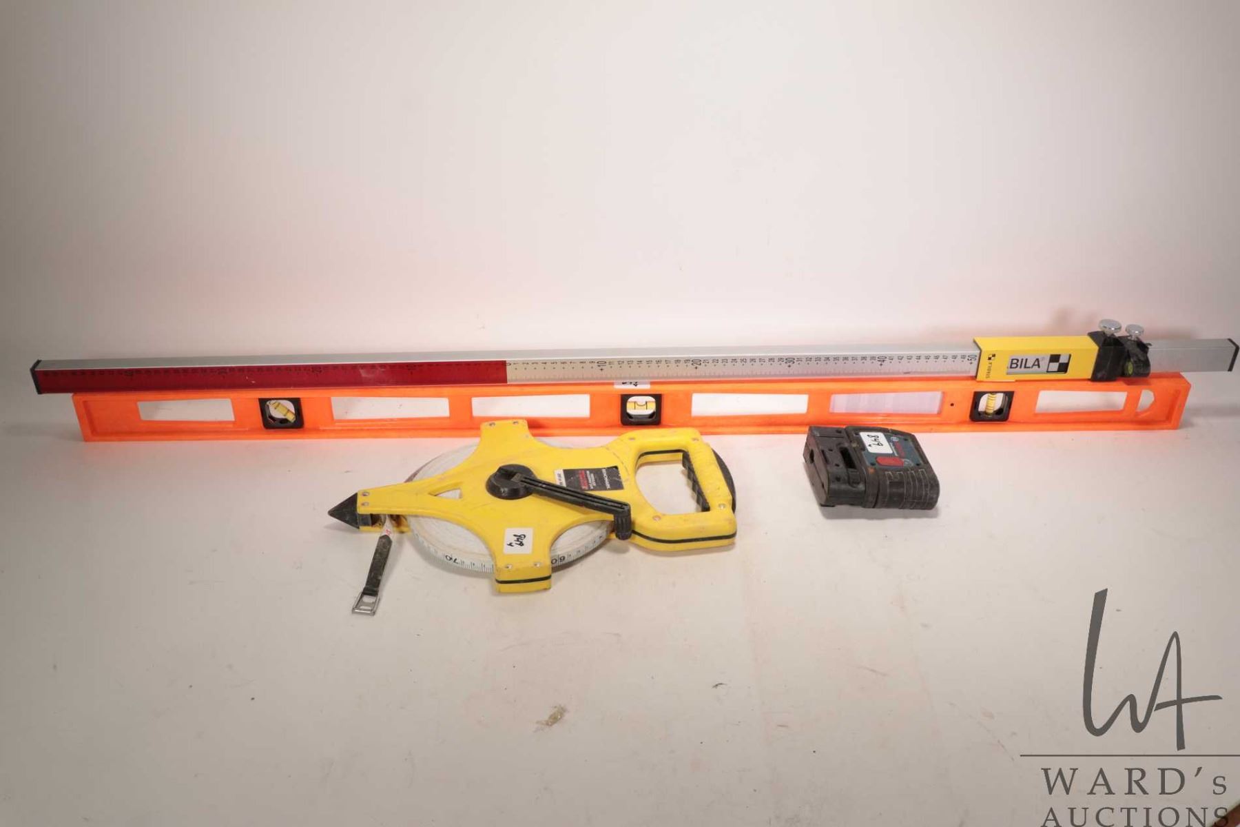 Bosch GPL3 laser level, Stabila measuring stick , 60 meter tape measure and a 4' level