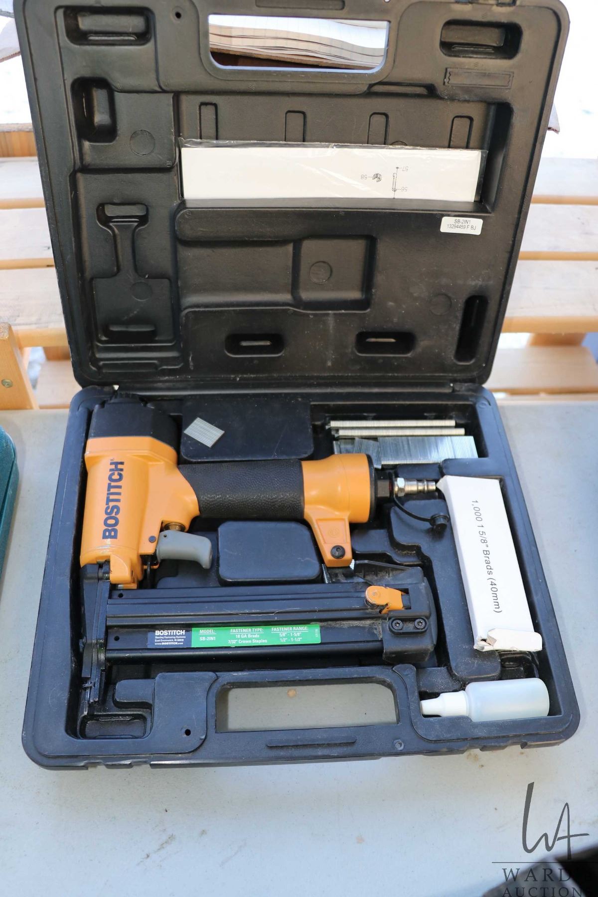 Bostitch SB-2IN1 18 gauge brad nailer and 7/32" crown stapler in fitted case