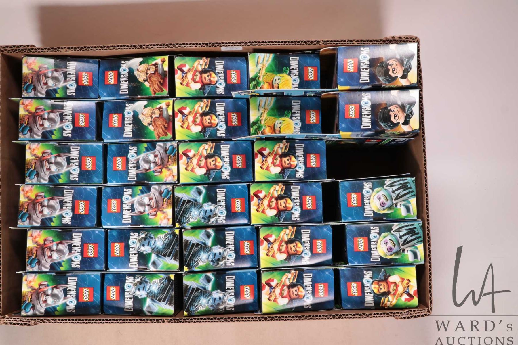 Box containing 29 count Lego "Dimensions" Fun Pack, assorted, some repeats, all new in factory sealed boxes