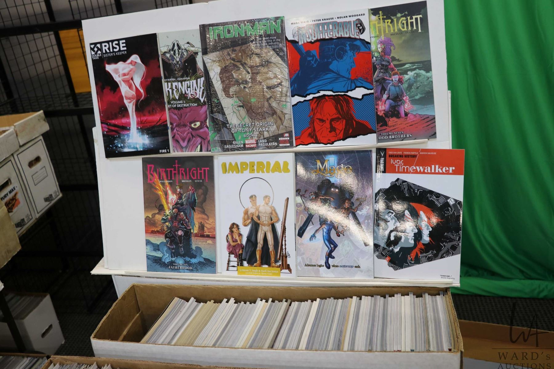 Box of approx. 100 graphic novels including Iron Man, Imperial, Mage, Insufferable, Birthright, etc. Important: Pickup is in Edmonton. Long comic boxes (28 x 8 x 11.5 and 23kg) will be shipped in 2 boxes approximately 11 x 9 x 12 and 13kg each through Canada Post. Long boxes can be palletized for large invoices. Details to follow