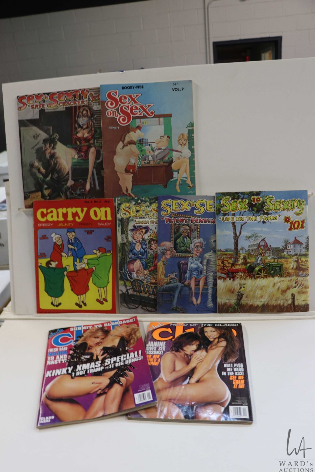 Box of approx. 67 adult themed magazines and comics including Sex to Sexty, Sex on Sex, Carry On, etc. Important: Pickup is in Edmonton. Long comic boxes (28 x 8 x 11.5 and 23kg) will be shipped in 2 boxes approximately 11 x 9 x 12 and 13kg each through Canada Post. Long boxes can be palletized for large invoices. Details to follow