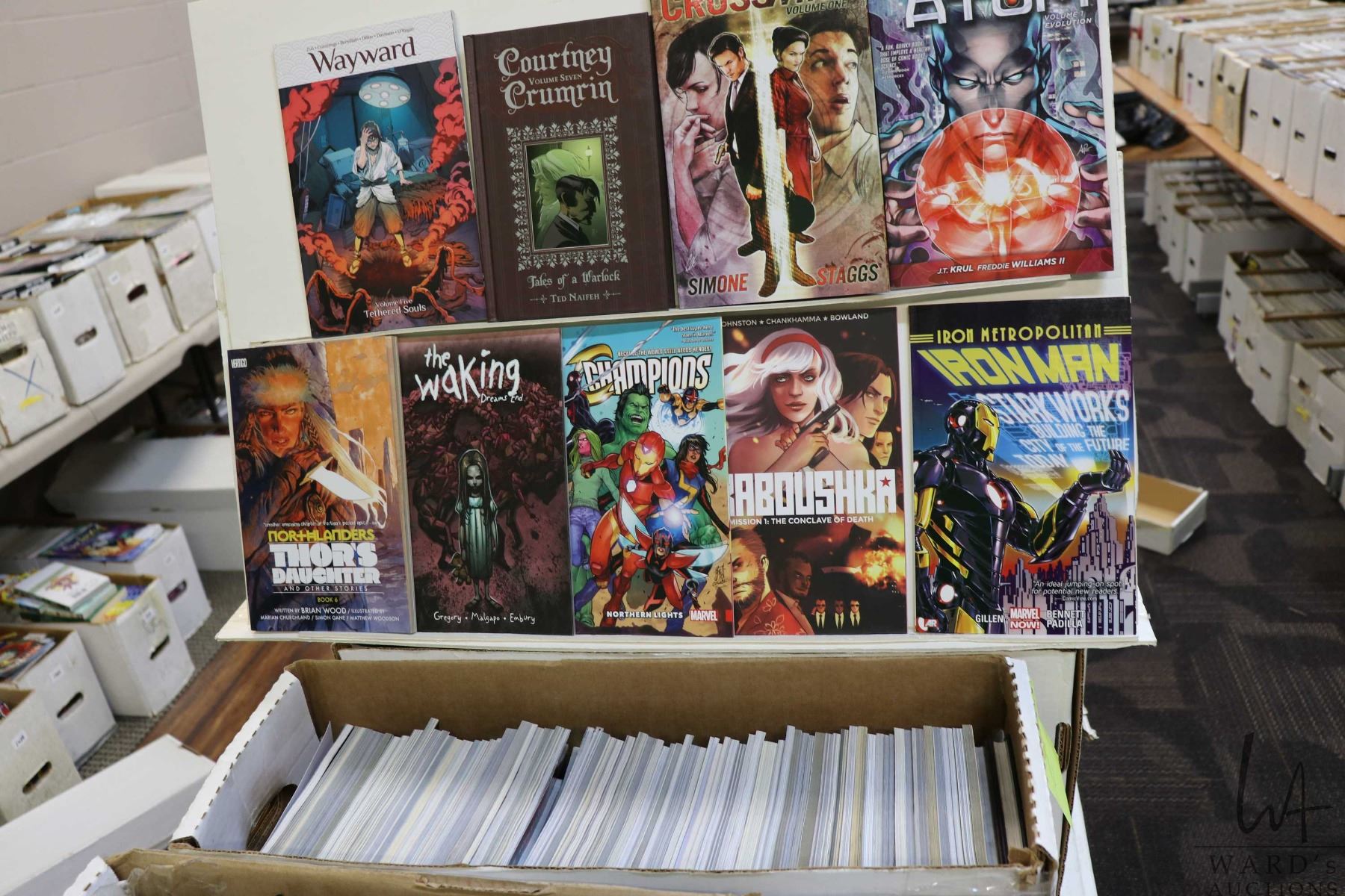 Box of approx. 89 graphic novels including Crosswind, Captain Atom, Iron Man, etc. Important: Pickup is in Edmonton. Long comic boxes (28 x 8 x 11.5 and 23kg) will be shipped in 2 boxes approximately 11 x 9 x 12 and 13kg each through Canada Post. Long boxes can be palletized for large invoices. Details to follow