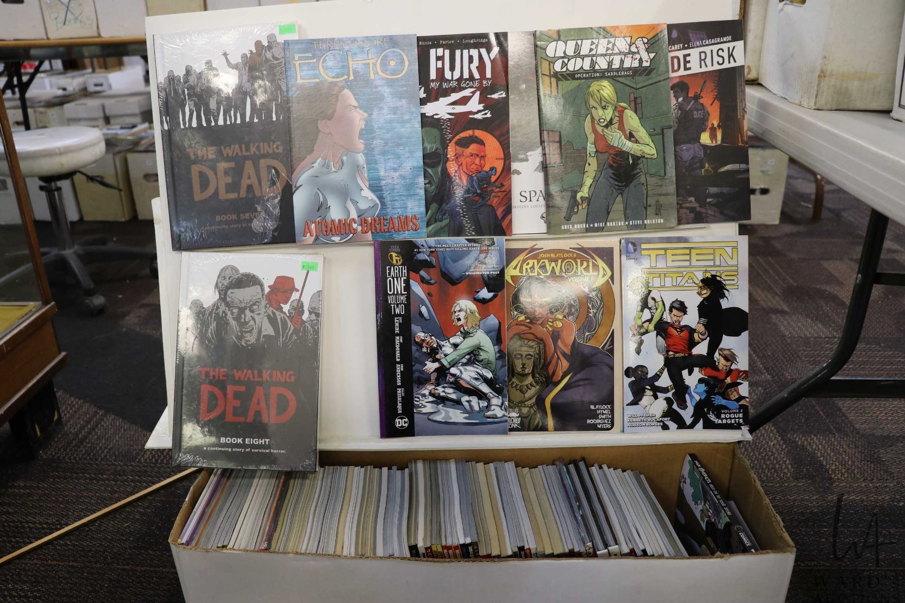 Box of approx. 93 Graphic Novels including The Walking Dead, Queen & Country, Spawn, Suicide Risk, Teen Titans, etc. Important: Pickup is in Edmonton. Long comic boxes (28 x 8 x 11.5 and 23kg) will be shipped in 2 boxes approximately 11 x 9 x 12 and 13kg each through Canada Post. Long boxes can be palletized for large invoices. Details to follow