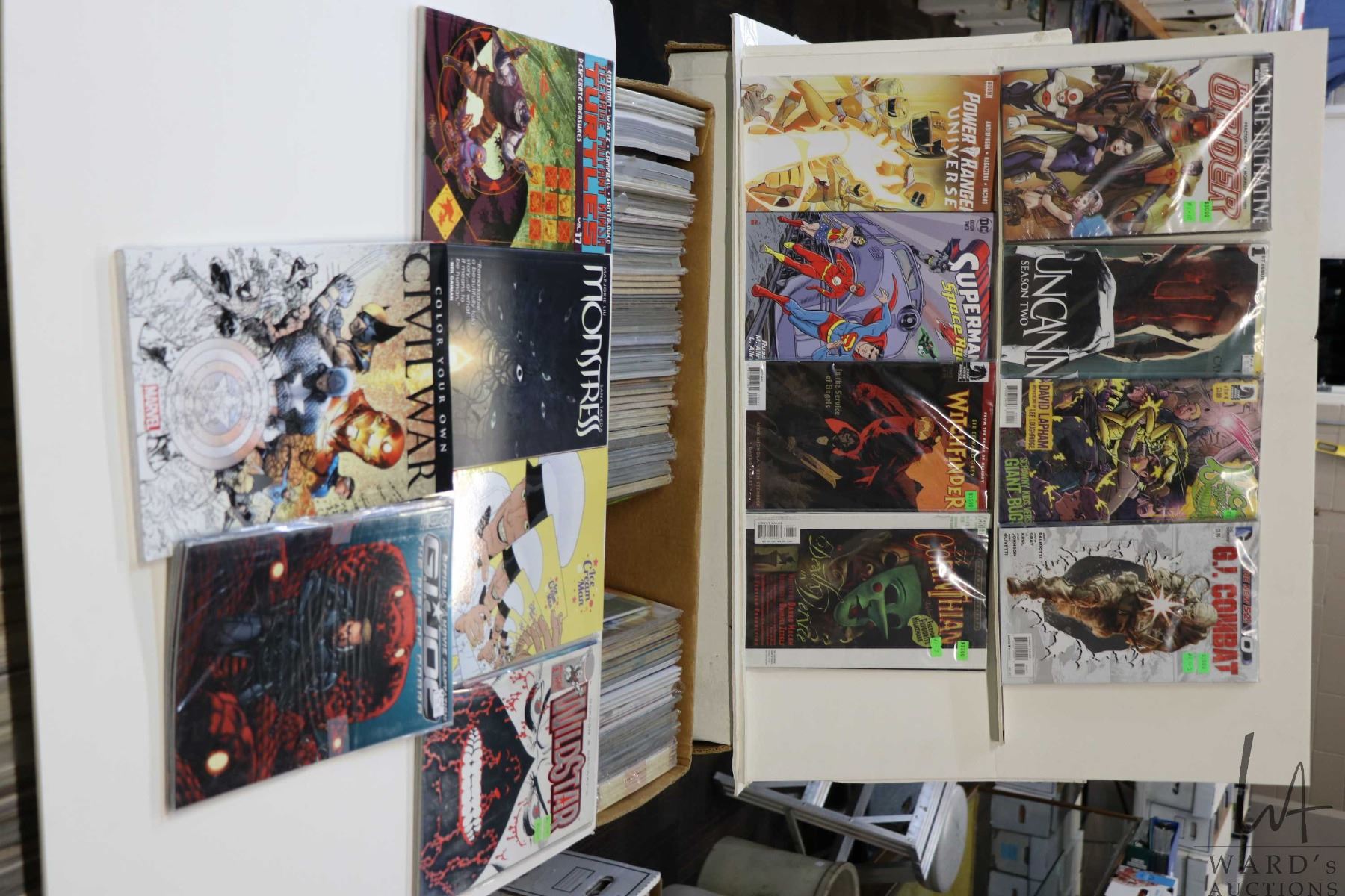 Box of approx. more than 250 comics & graphic novels including Witchfinder, Teenage Mutant Ninja Turtles, Ice Cream Man, Monstress, Superman Space Age, Power Ranger Universe, etc. Important: Pickup is in Edmonton. Long comic boxes (28 x 8 x 11.5 and 23kg) will be shipped in 2 boxes approximately 11 x 9 x 12 and 13kg each through Canada Post. Long boxes can be palletized for large invoices. Details to follow