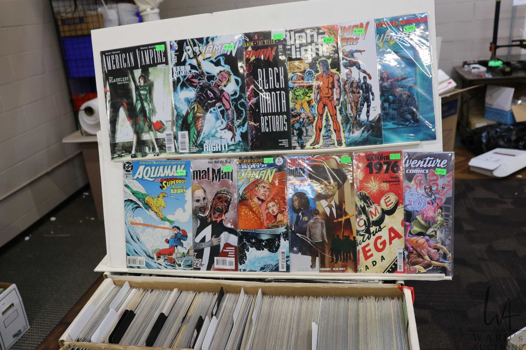 Box of approx. more than 300 comics including Alpha Flight, American Carnage, American Vampire, Aquaman and The Others, Aquaman, Adventure, etc. Important: Pickup is in Edmonton. Long comic boxes (28 x 8 x 11.5 and 23kg) will be shipped in 2 boxes approximately 11 x 9 x 12 and 13kg each through Canada Post. Long boxes can be palletized for large invoices. Details to follow