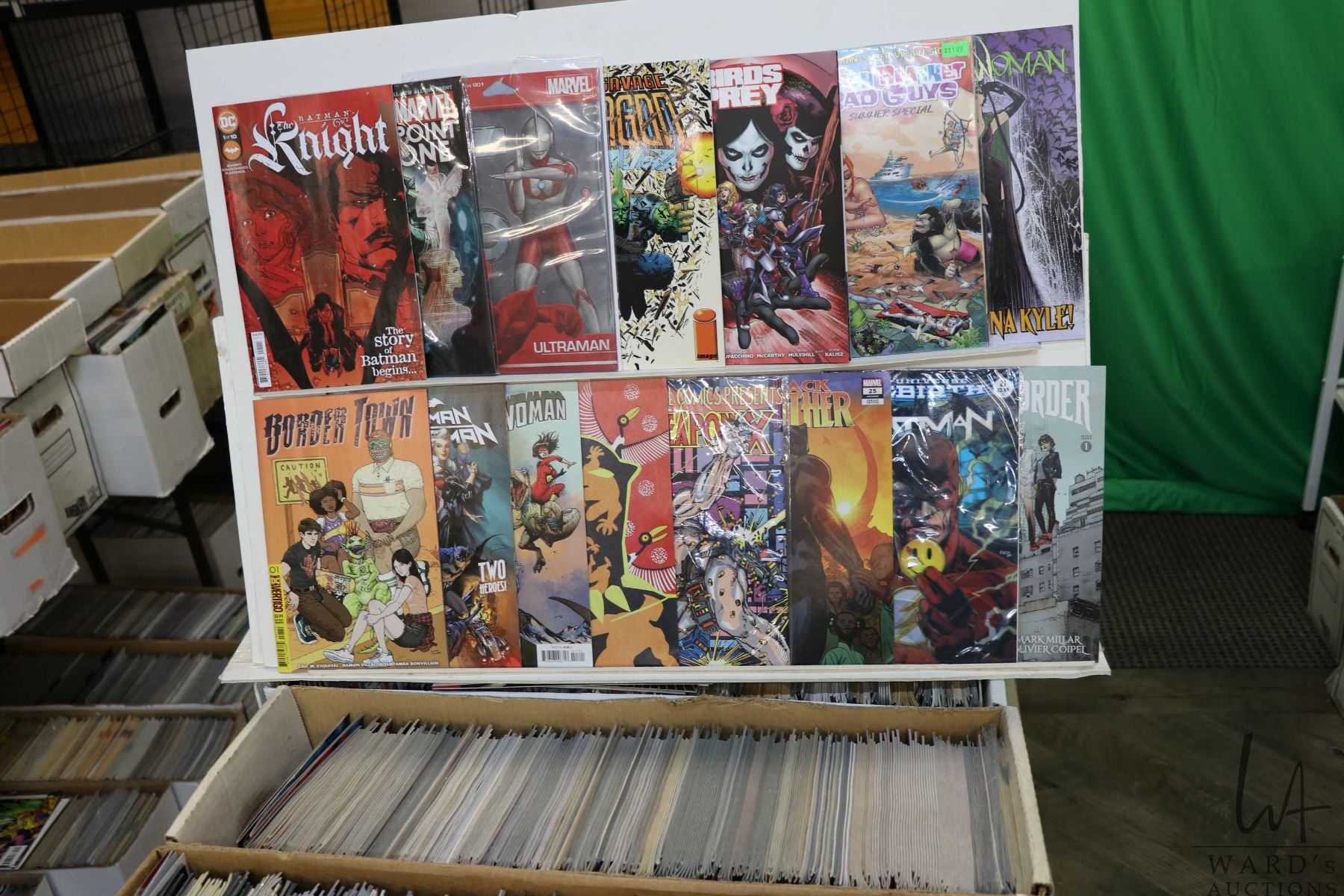 Box of approx. more than 300 comics including Black Panther, Batman Rebirth, Birds of Prey, Beach Blanket Bad Guys, Catwoman, The Magic Order, etc. Important: Pickup is in Edmonton. Long comic boxes (28 x 8 x 11.5 and 23kg) will be shipped in 2 boxes approximately 11 x 9 x 12 and 13kg each through Canada Post. Long boxes can be palletized for large invoices. Details to follow