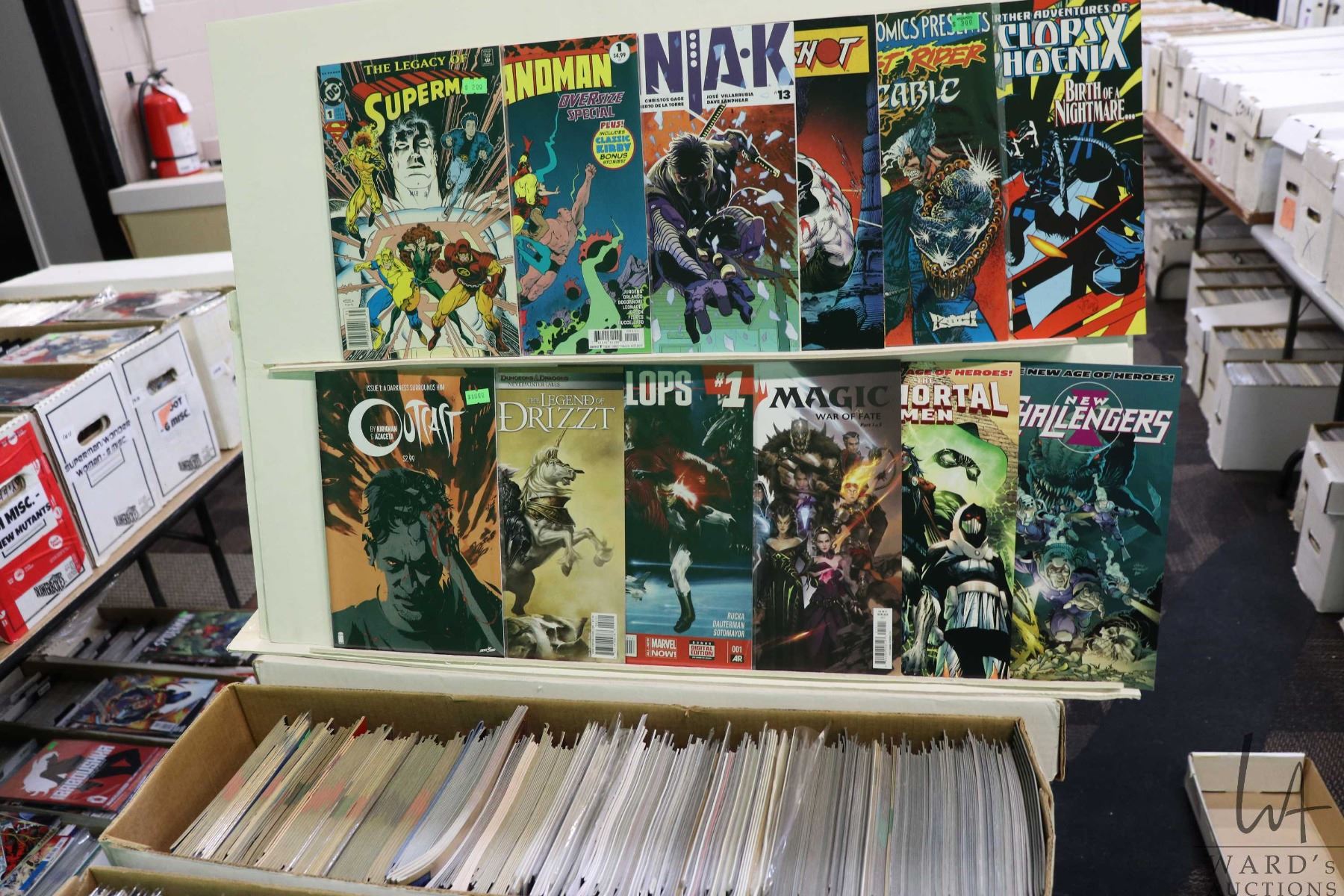 Box of approx. more than 300 comics including Bloodshot, Magic, Ghost Rider and Cable, Immortal Men, Cyclops and Pheonix, New Challengers, etc. Important: Pickup is in Edmonton. Long comic boxes (28 x 8 x 11.5 and 23kg) will be shipped in 2 boxes approximately 11 x 9 x 12 and 13kg each through Canada Post. Long boxes can be palletized for large invoices. Details to follow