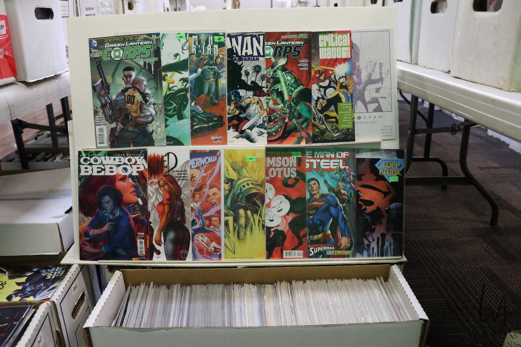Box of approx. more than 300 comics including Crimson Lotus, Critical Mass, Green Lantern, The Man of Steel, Superman Lois & Clark, etc. Important: Pickup is in Edmonton. Long comic boxes (28 x 8 x 11.5 and 23kg) will be shipped in 2 boxes approximately 11 x 9 x 12 and 13kg each through Canada Post. Long boxes can be palletized for large invoices. Details to follow