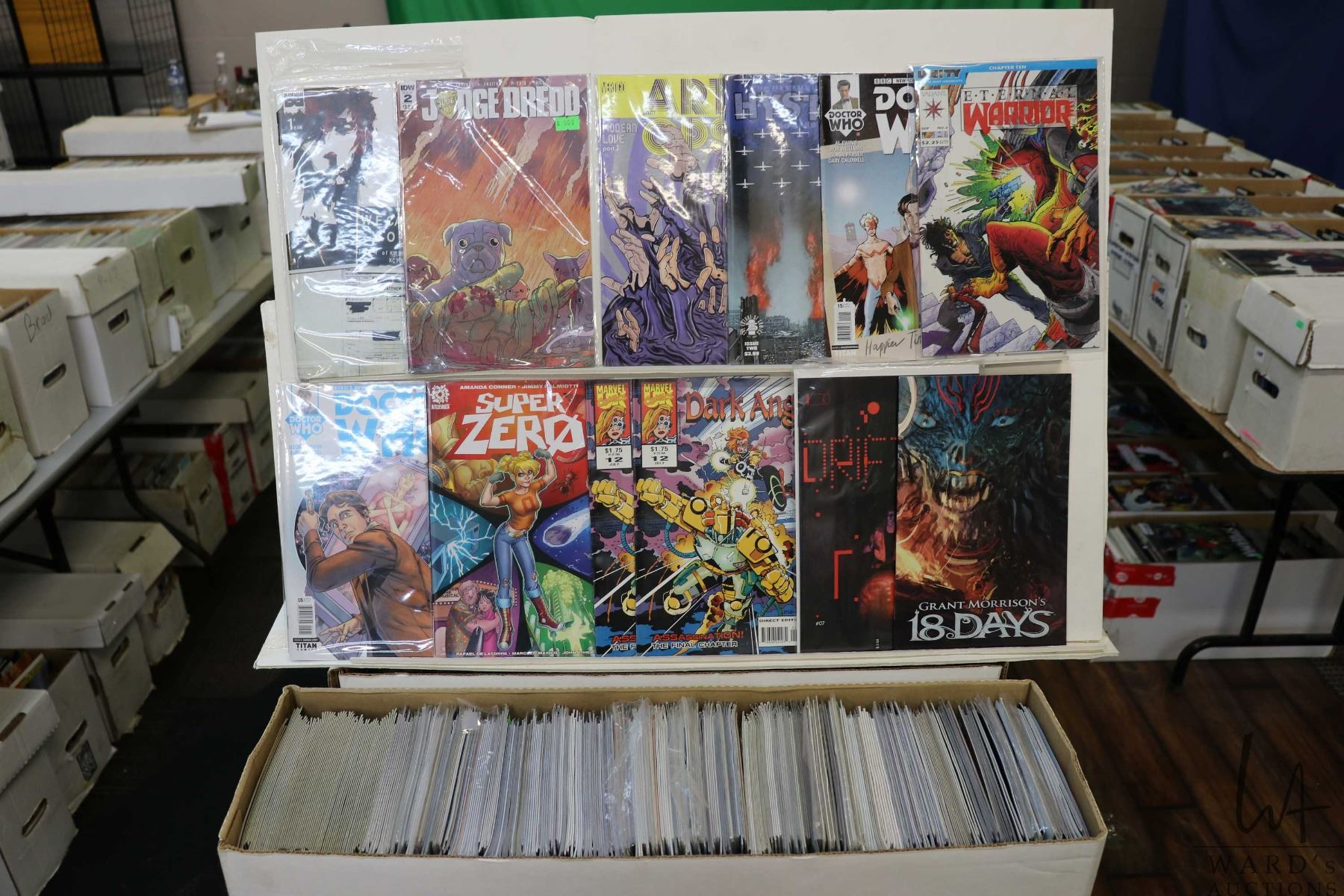 Box of approx. more than 300 comics including Dark Angel, Super Zero, Judge Dredd, We Can Never Go Home, Dr. Who, etc. Important: Pickup is in Edmonton. Long comic boxes (28 x 8 x 11.5 and 23kg) will be shipped in 2 boxes approximately 11 x 9 x 12 and 13kg each through Canada Post. Long boxes can be palletized for large invoices. Details to follow
