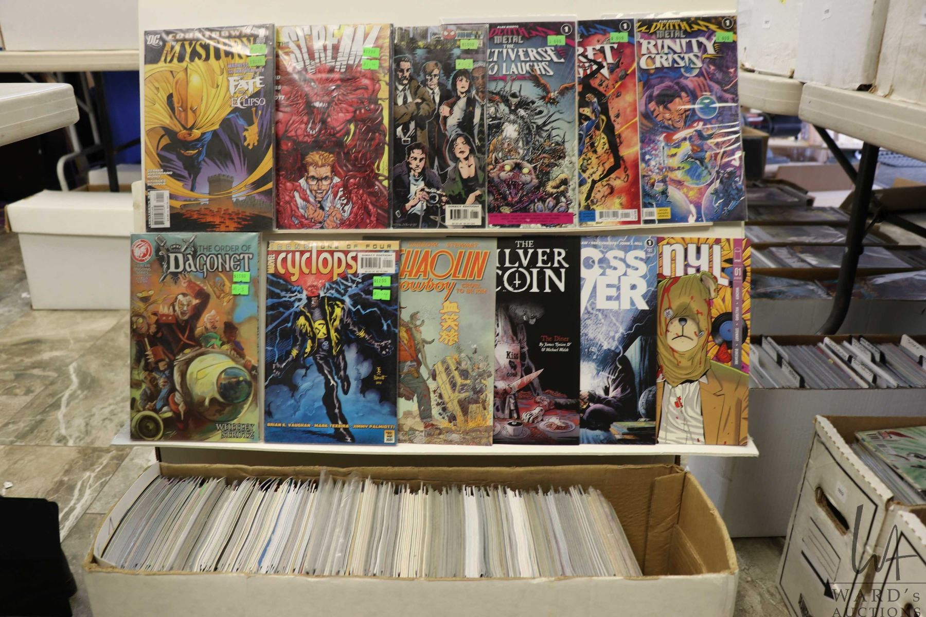 Box of approx. more than 300 comics including Dark Night Death Metal, The Shaolin Cowboy, The Silver Coin, Cross Over, Vinyl, etc. Important: Pickup is in Edmonton. Long comic boxes (28 x 8 x 11.5 and 23kg) will be shipped in 2 boxes approximately 11 x 9 x 12 and 13kg each through Canada Post. Long boxes can be palletized for large invoices. Details to follow