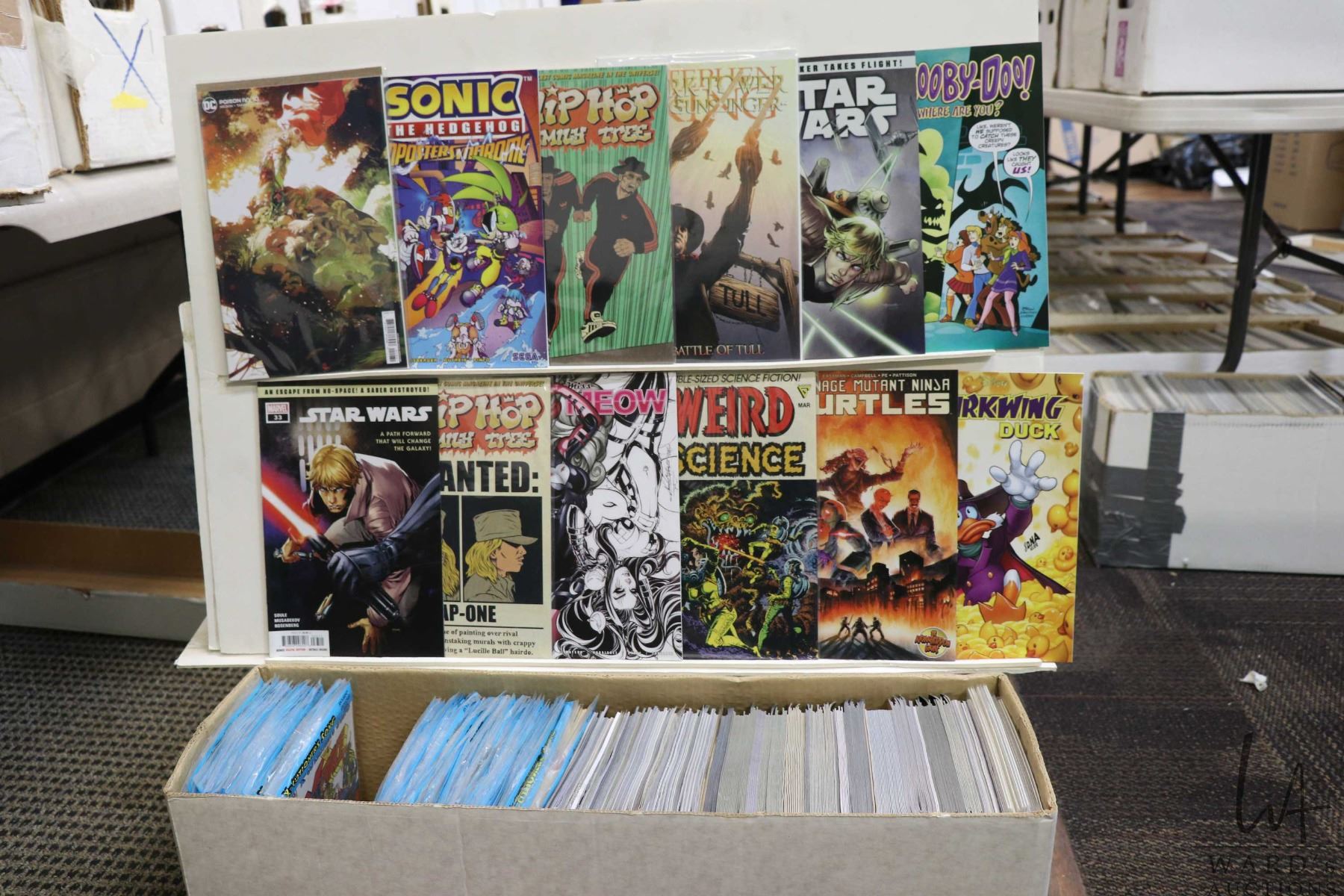 Box of approx. more than 300 comics including Dark Tower The Gunslinger, Weird Science, Star Wars, Teenage Mutant Ninja Turtles, Scooby Doo, Darkwing Duck, etc. Important: Pickup is in Edmonton. Long comic boxes (28 x 8 x 11.5 and 23kg) will be shipped in 2 boxes approximately 11 x 9 x 12 and 13kg each through Canada Post. Long boxes can be palletized for large invoices. Details to follow