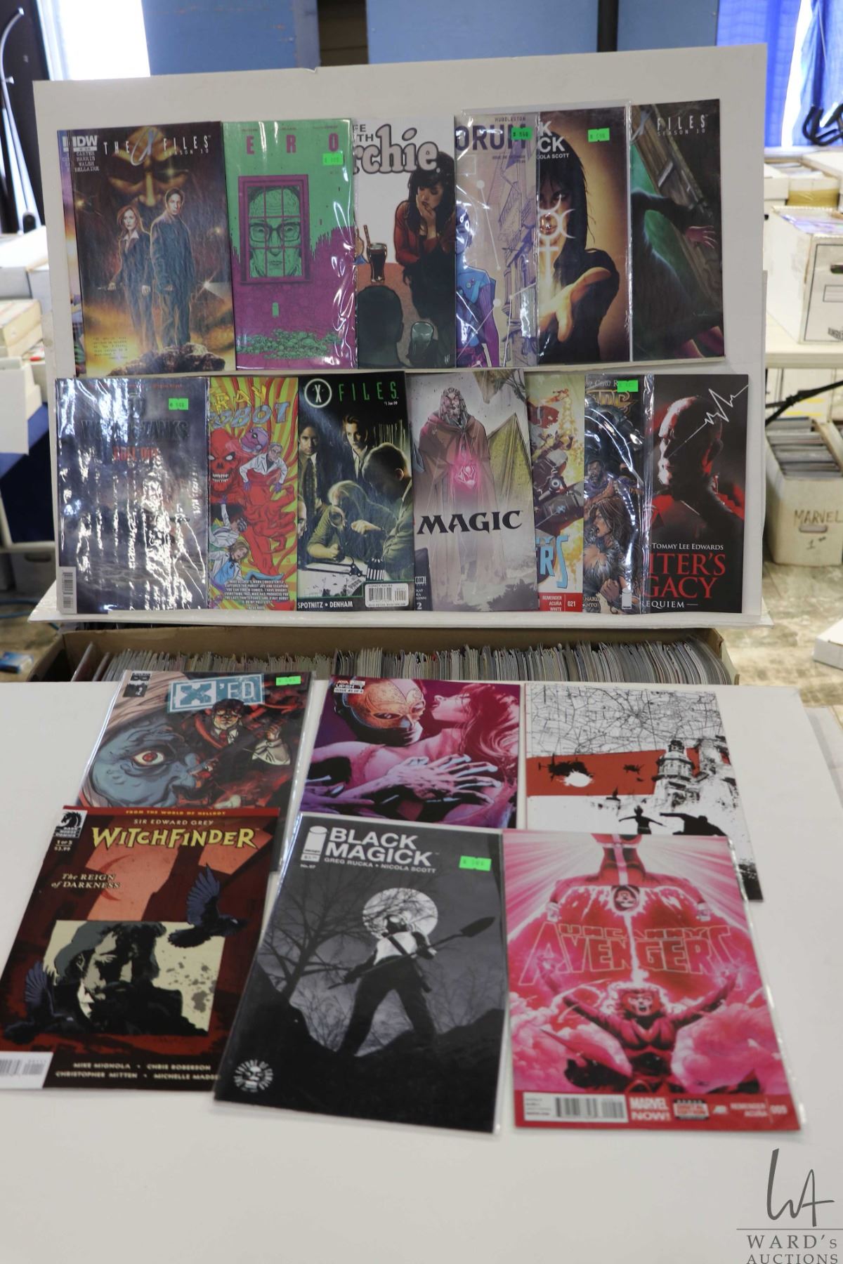Box of approx. more than 300 comics including Decorum, Uncanny Avengers, Witchblade, Black Magik, The X-Files, Jupiters Legacy, etc. Important: Pickup is in Edmonton. Long comic boxes (28 x 8 x 11.5 and 23kg) will be shipped in 2 boxes approximately 11 x 9 x 12 and 13kg each through Canada Post. Long boxes can be palletized for large invoices. Details to follow