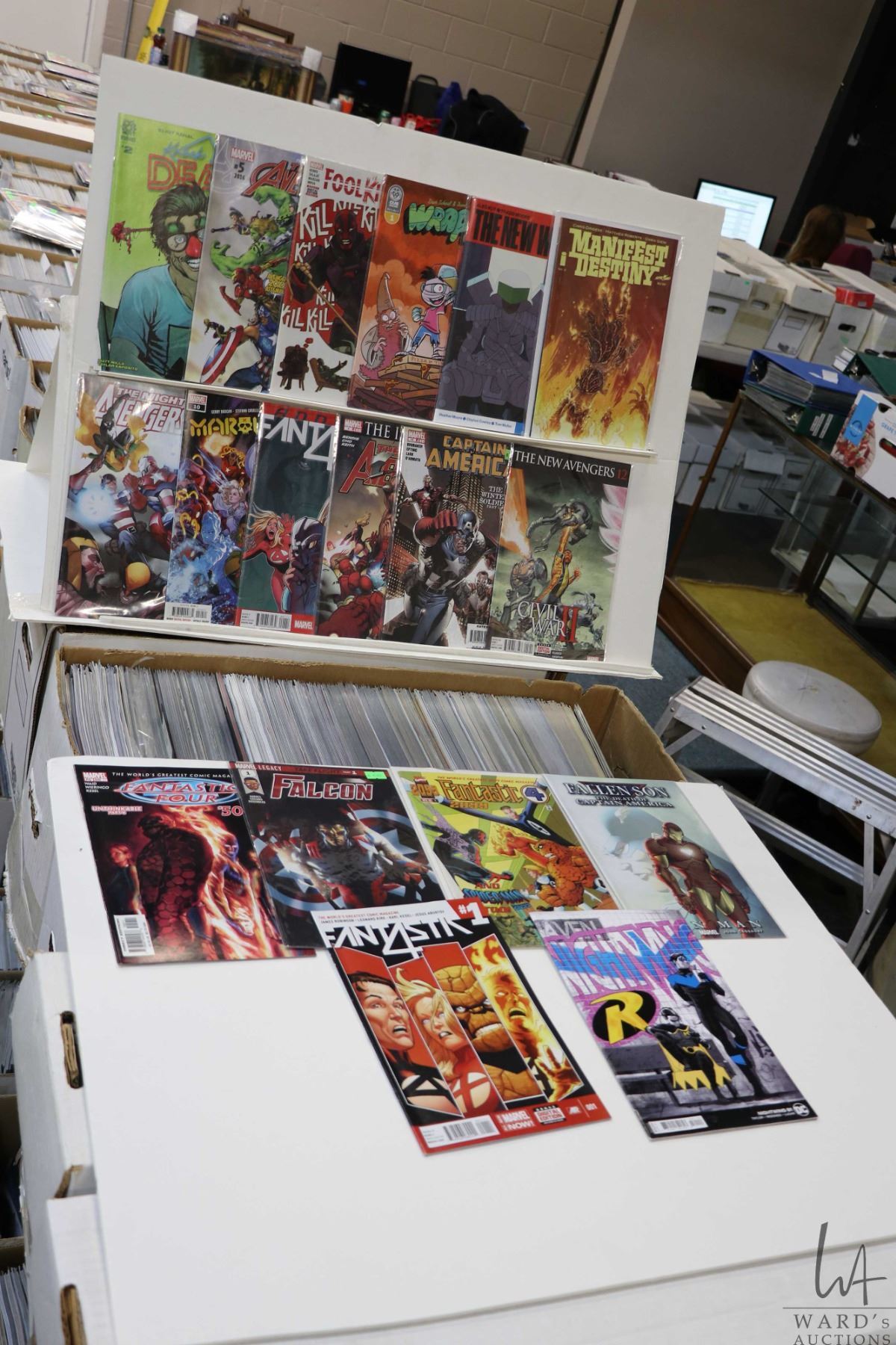 Box of approx. more than 300 comics including Fool Killer, Fantastic Four, The New Avengers, Knock 'Em Dead, Marauders, The Mighty Avengers, etc. Important: Pickup is in Edmonton. Long comic boxes (28 x 8 x 11.5 and 23kg) will be shipped in 2 boxes approximately 11 x 9 x 12 and 13kg each through Canada Post. Long boxes can be palletized for large invoices. Details to follow