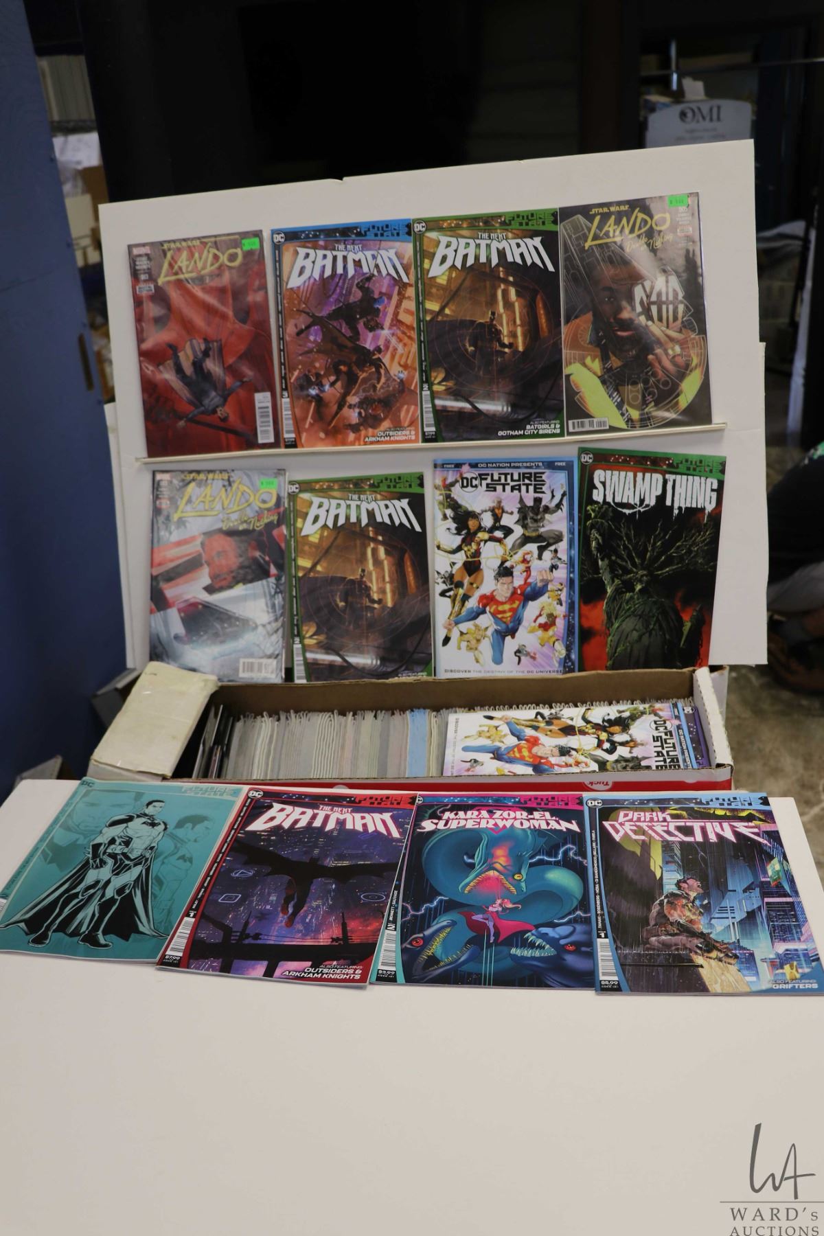 Box of approx. more than 300 comics including Future State, Future State The Next Batman, Future State Dark Detective, Star Wars X Wing, etc. Important: Pickup is in Edmonton. Long comic boxes (28 x 8 x 11.5 and 23kg) will be shipped in 2 boxes approximately 11 x 9 x 12 and 13kg each through Canada Post. Long boxes can be palletized for large invoices. Details to follow