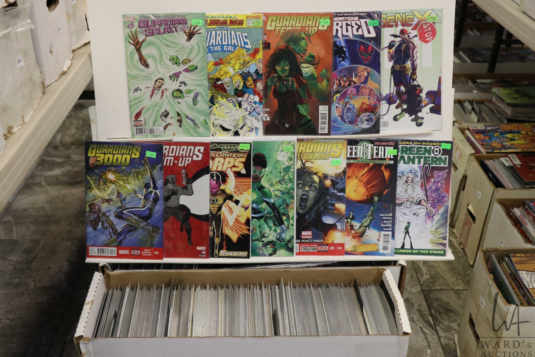 Box of approx. more than 300 comics including Green Lantern, Gene X, Green Team, Generation Forged, Guardians of the Galaxy, Guardians Team Up, etc. Important: Pickup is in Edmonton. Long comic boxes (28 x 8 x 11.5 and 23kg) will be shipped in 2 boxes approximately 11 x 9 x 12 and 13kg each through Canada Post. Long boxes can be palletized for large invoices. Details to follow