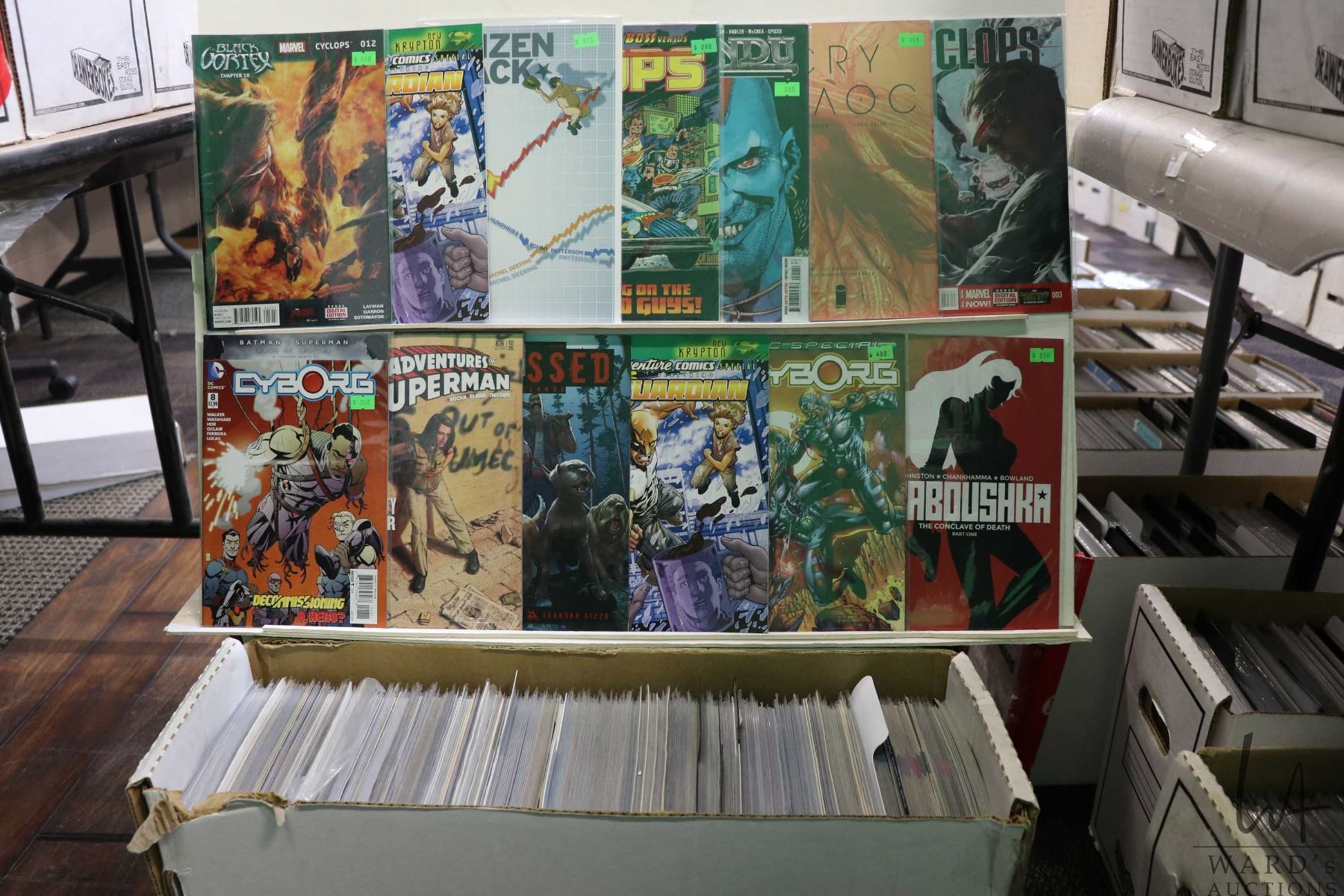 Box of approx. more than 300 comics including Guardian, Yondu, Cry Havoc, Cyborg, Cyclops, etc. Important: Pickup is in Edmonton. Long comic boxes (28 x 8 x 11.5 and 23kg) will be shipped in 2 boxes approximately 11 x 9 x 12 and 13kg each through Canada Post. Long boxes can be palletized for large invoices. Details to follow