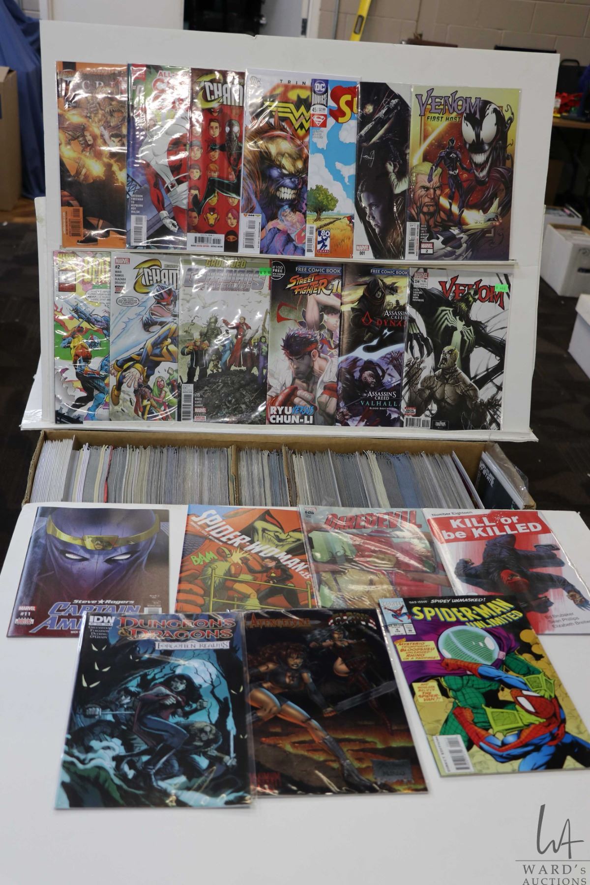Box of approx. more than 300 comics including Guardians of the Galaxy, Champions, Captain Canuck, Crimson, Death's Head, etc. Important: Pickup is in Edmonton. Long comic boxes (28 x 8 x 11.5 and 23kg) will be shipped in 2 boxes approximately 11 x 9 x 12 and 13kg each through Canada Post. Long boxes can be palletized for large invoices. Details to follow